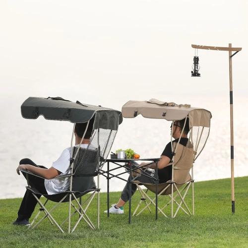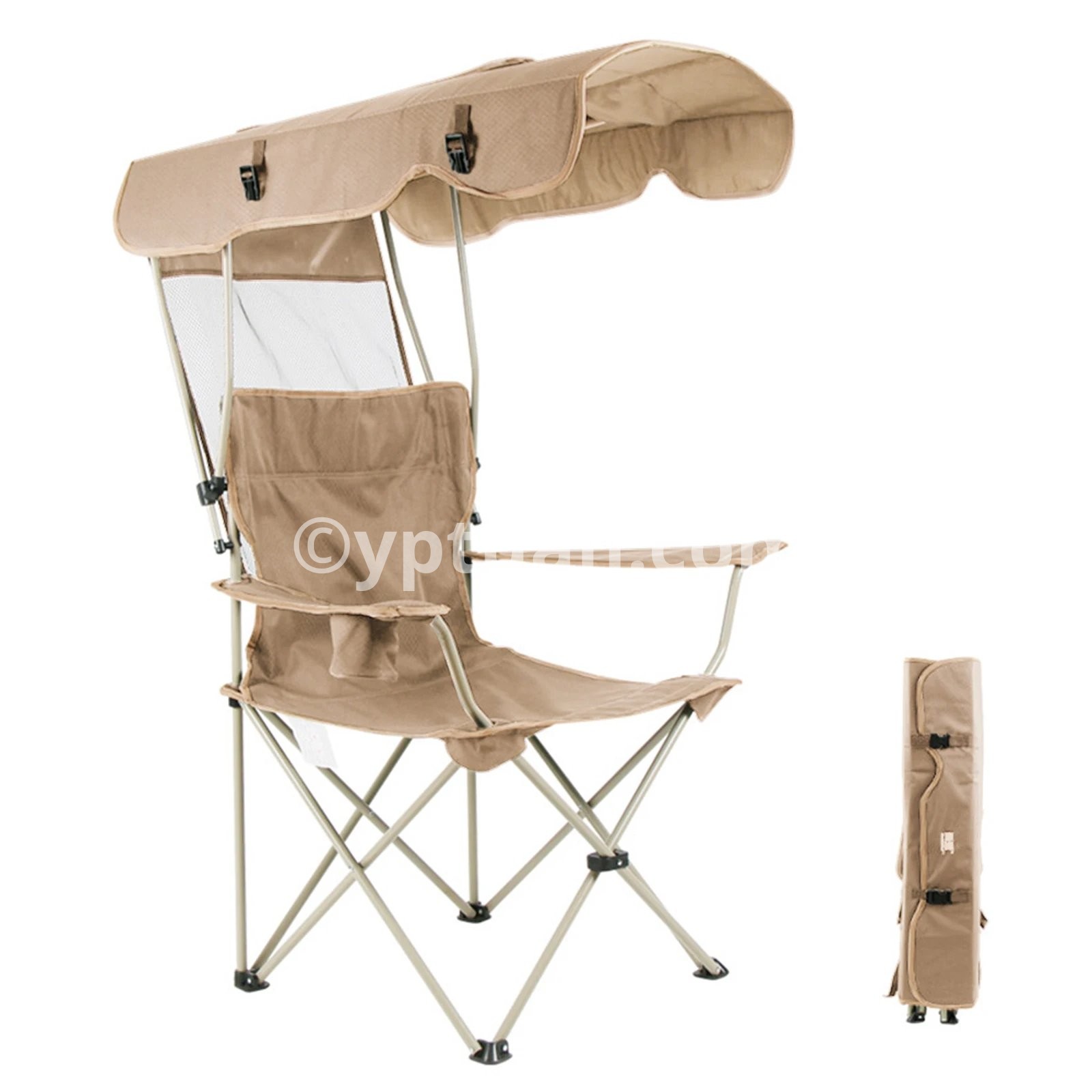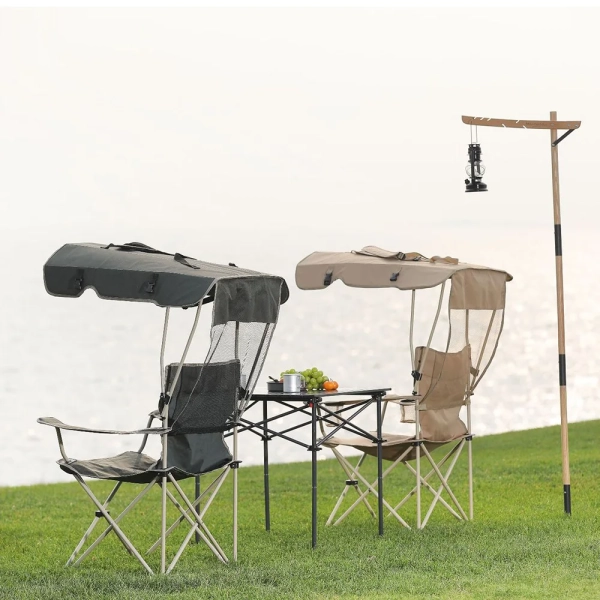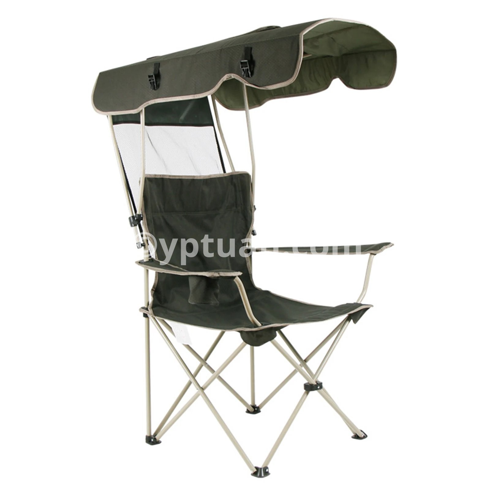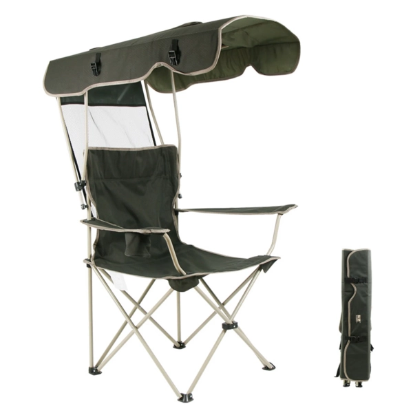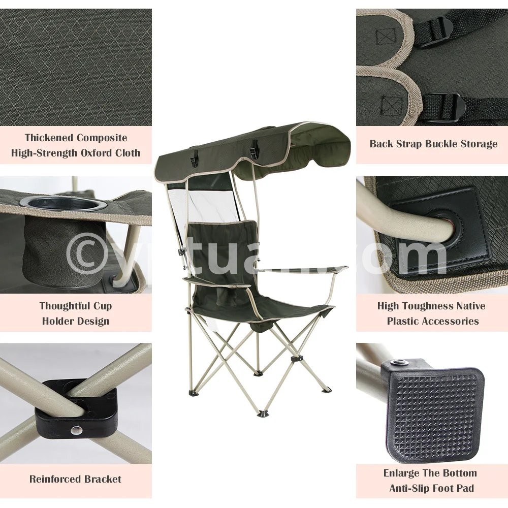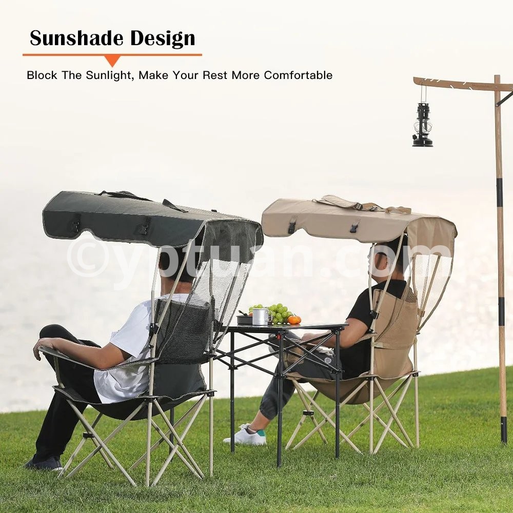 Camping Portable Folding Chair With Canopy Shade Beach Chair Lawn Chair For Outside Activities Reinforced Anti-Slip Foot Pad