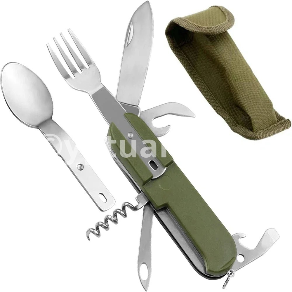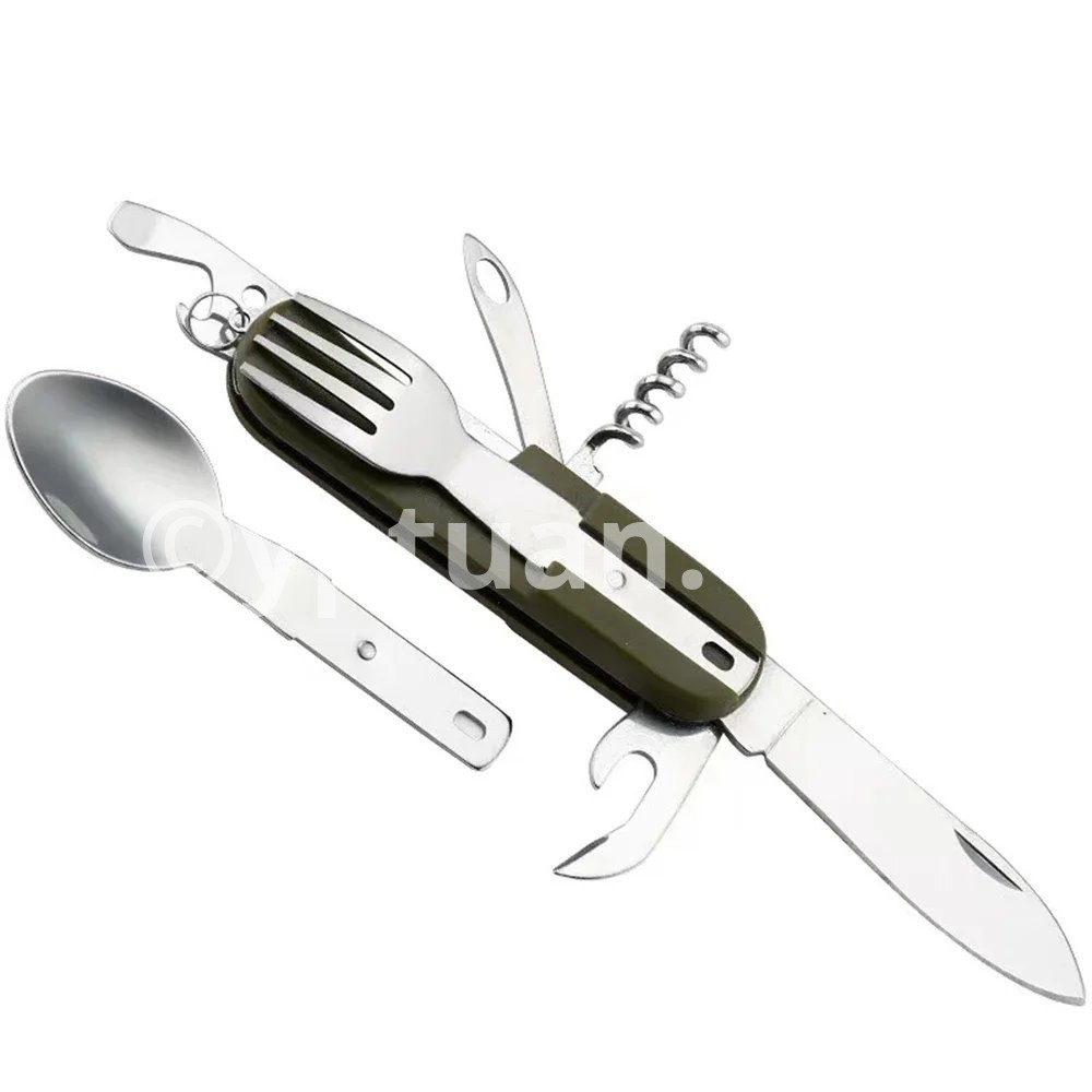 Specifications Model HW-WFX-2530,1119 Number of Users 1 Purification Method None Style OUTDOOR Material Stainless Steel Disposable No Fold Yes With Cooler Bag or Not No With Tableware or Not Yes Can Hold Boiling Water or Not Not applicable Origin Mainland China Feature 6 Support Dropship,Wholesale Feature 5 Mini Picnic Tableware Feature 4 Bottle Opener Feature 3 Folding Tableware Feature 2 Outdoor Multitools Feature 1 Pocket Knife Fork Spoon Material stainless steel Color Green,Black Item name Picnic Knife Features: 1. Stainless steel material, durable, rust resistant, longer service life. 2. Foldable design, when not in use can be folded, does not take up space, easy to carry. 3. A variety of functions to meet your needs at different times. Specification: Material: stainless steel Color: Black, green Size: 10.5*3.8*3.3cm Manual measurement may have deviations, please refer to the actual situation Applicable scenarios: camping, barbecuing, hiking, etc. Packing list: 1*Camping Picnic Cutlery