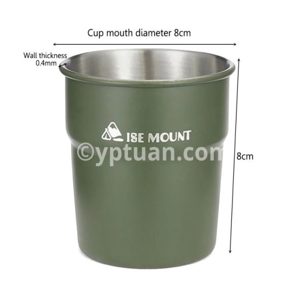 300ml Outdoor Camping Cup Portable Stainless Steel Tea Coffee Milk Mug Stackable Lightweight for Travel Hiking Backpacking Feature: 1. Durable: The water cup is made of 304 stainless steel with wire drawing process on the inner wall and sturdy stainless steel material, which is beautiful and durable. 2. Stackable Design: Space saving, layered storage, easy to carry, lightweight and portable. 3. Fine Workmanship: Advanced spray painting technology, smooth surface, comfortable grip, and delicate metal texture. 4. Wide Application: The camping cup is suitable for outdoor camping, travel, hiking, picnic, backpacking, home etc. 5. Satisfaction Guarantee: We strive to provide each customer with the highest standard of customer service to ensure you have a pleasant shopping experience. If you have any issues, inquiries or need assistance, please feel free to contact us directly.Specification: Material: 304 stainless steel Colors: grey, army green, sand color, black, white (optional) Weight: 70g Size: Cup mouth diameter 8cm/3.14inch * height 8cm/3.14inch, wall thickness 0.4mm/0.01inch Capacity: 300ml Note: Due to the different monitor and light effect, the actual color of the item might be slightly different from the color showed on the pictures. Thank you! Please allow 1-2cm measuring deviation due to manual measurement.