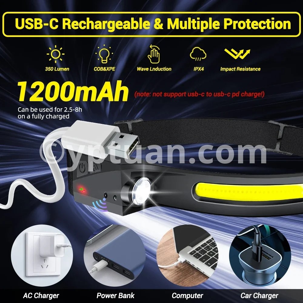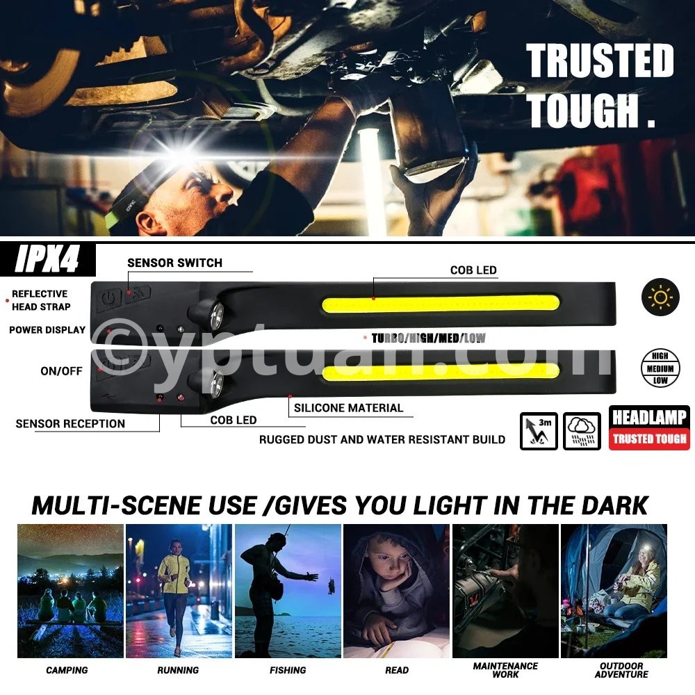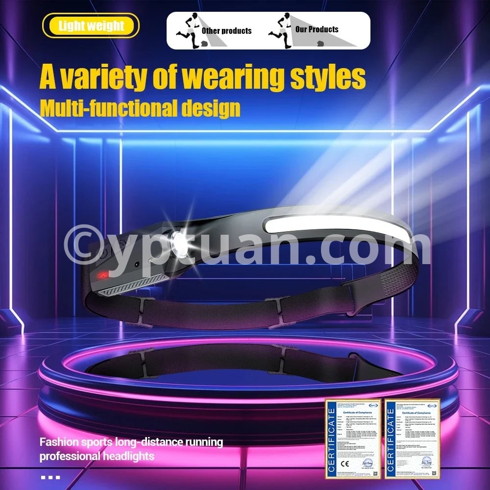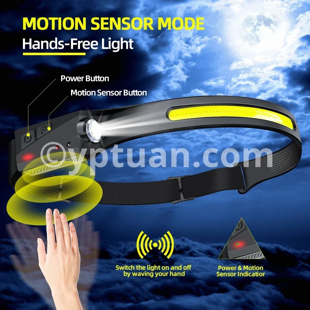 Induction LED Headlamp USB Rechargeable COB Wide Beam Torch Head Flashlight Outdoor Portable Camping Fishing Headlight Lantern