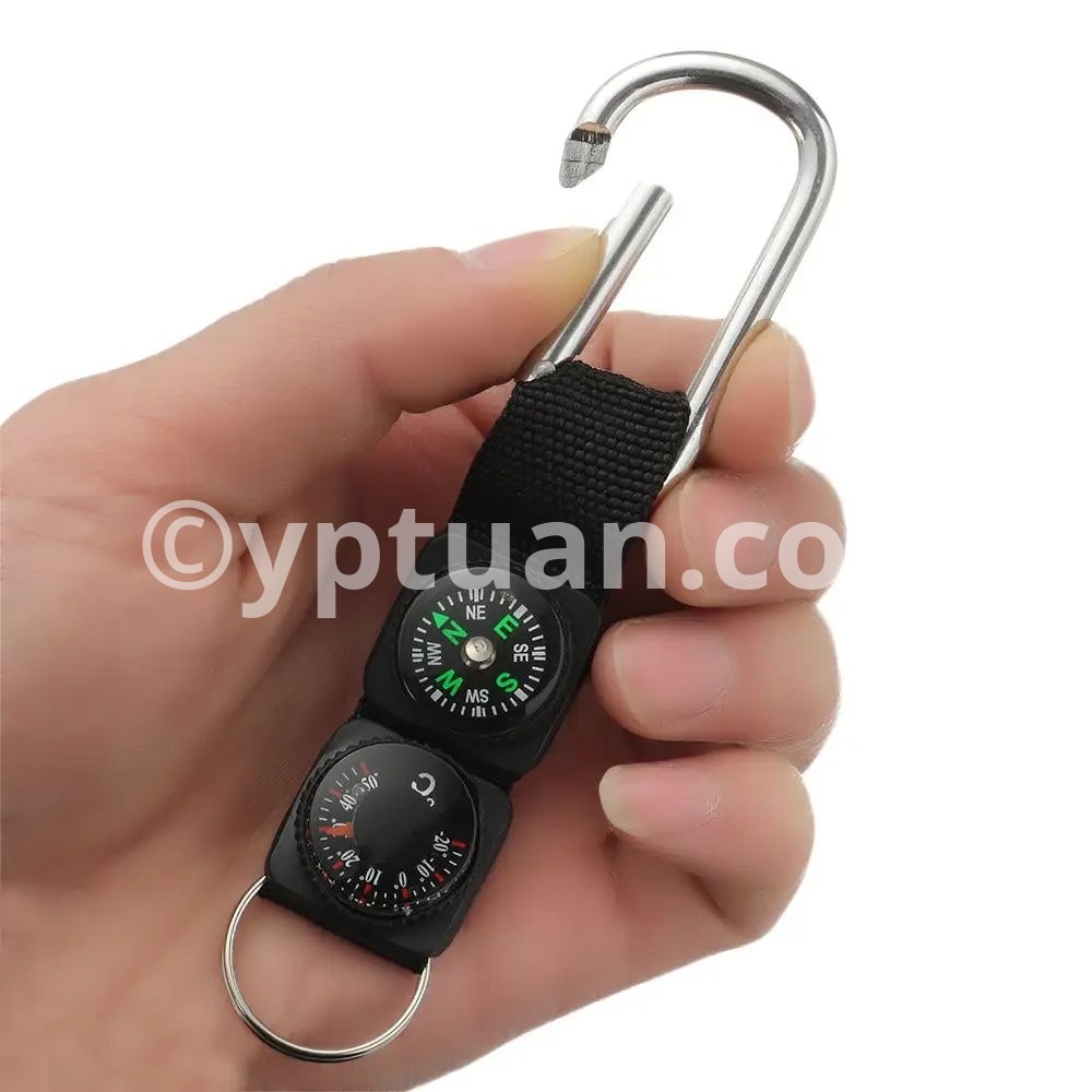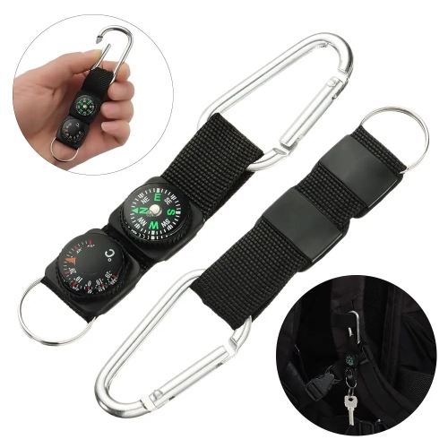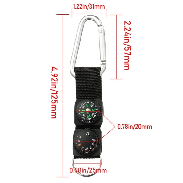 Compass Thermometer Carabiner Outdoor Hiking Tactical Survival Key Ring Belt Multifunction 3 In 1 Camping Climbing Keychain