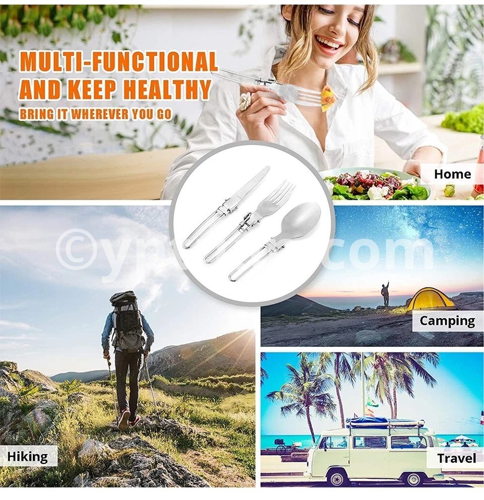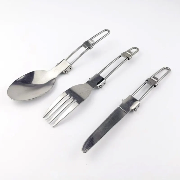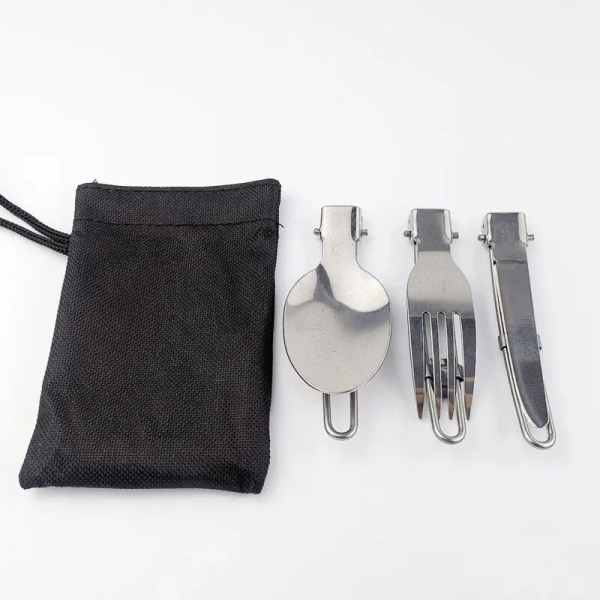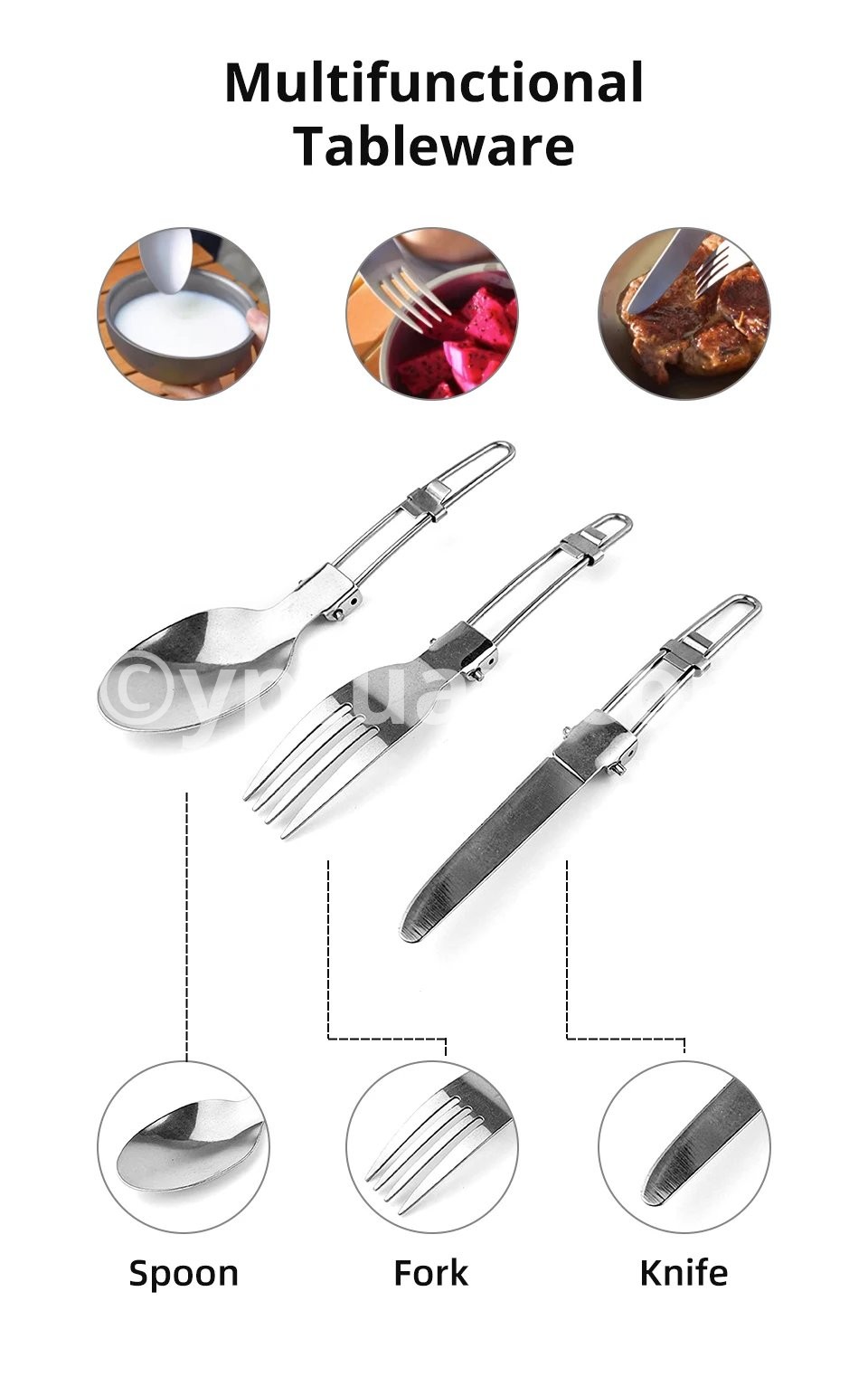 Camping Fork Spoon Outdoor Tableware Foldable Ultralight Stainless Steel Set Of Dishes For Camping Outdoor Cooking