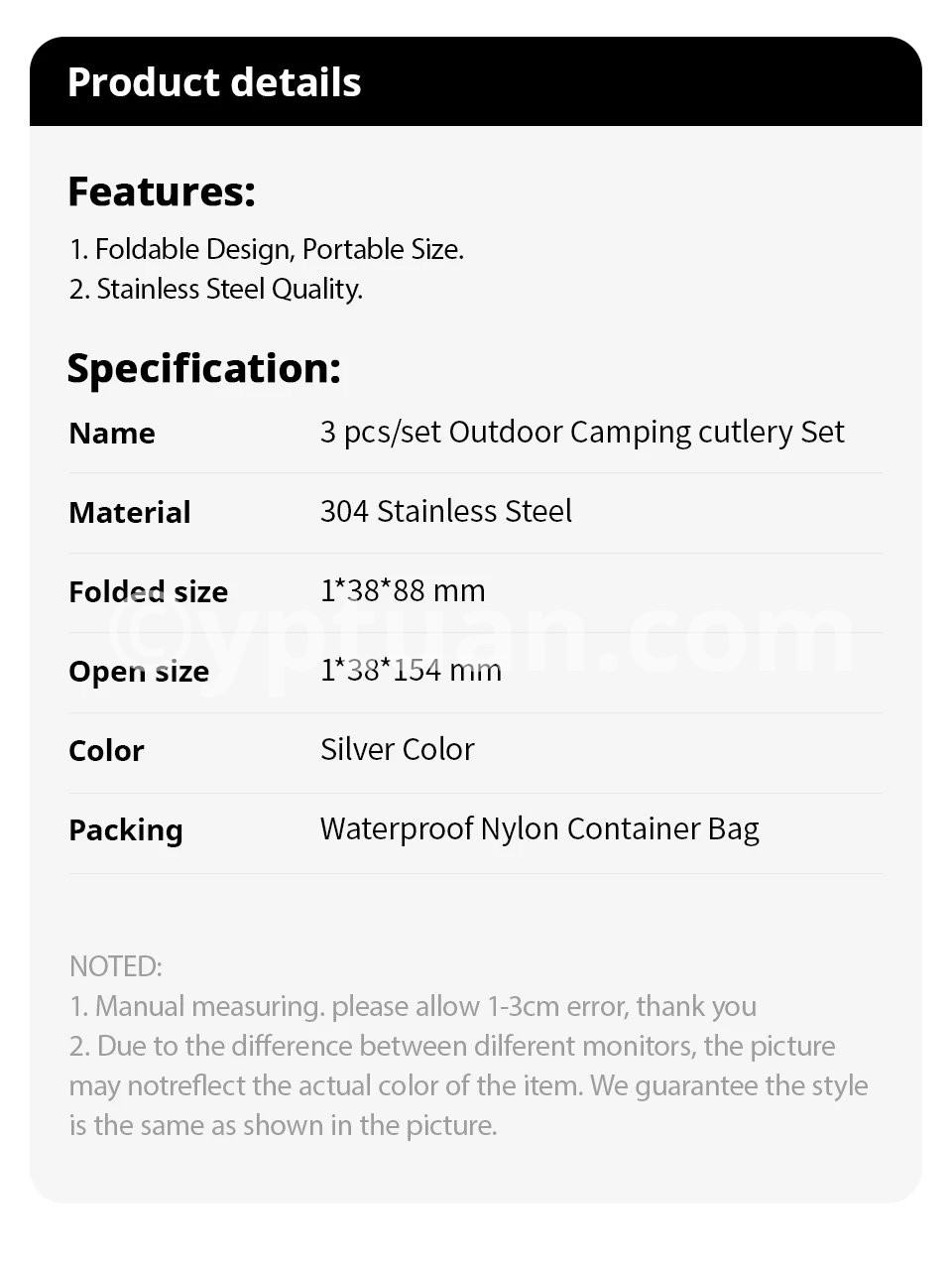 1,Item: 3 pcs/set Outdoor Camping tableware cutlery Set
