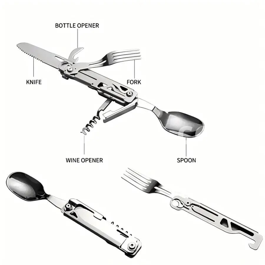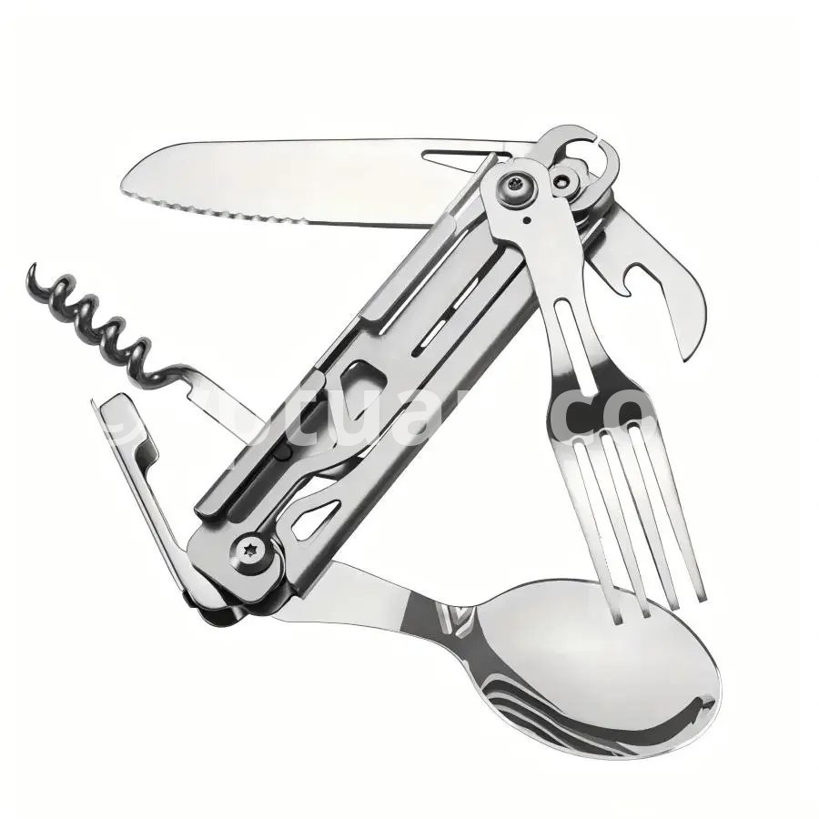 1 pc 6 in 1 Multifunctional Cutlery Set Outdoor Tableware Camping Portable Meal Knife Fork Spoon Bottle Outdoor Camping Cookware