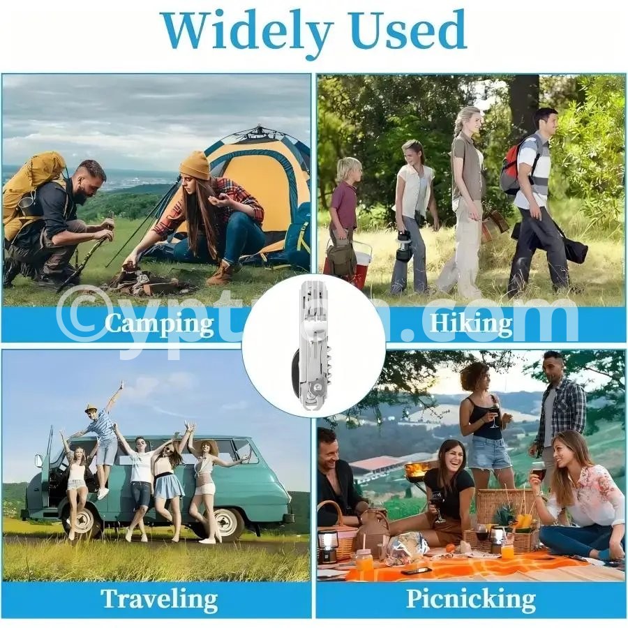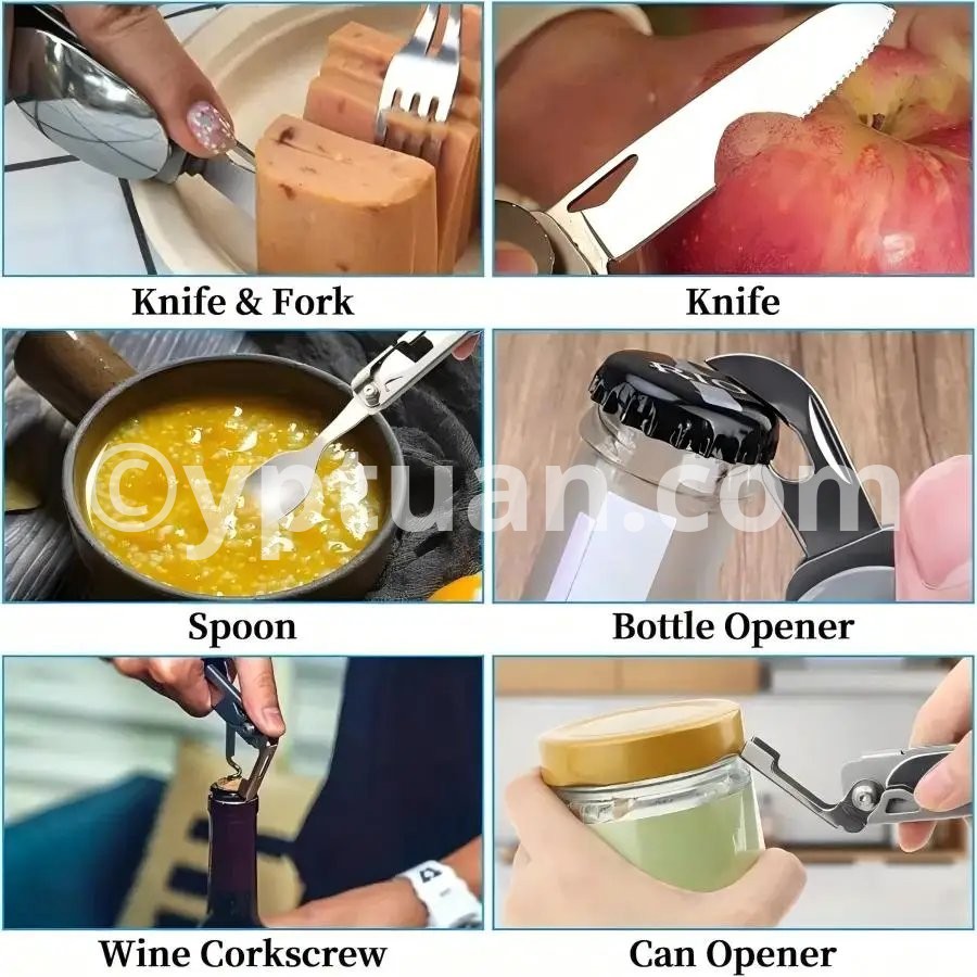 This camping utensil set with a detachable fork, spoon, knife and bottle opener, allowing you to easily disassemble and fold.