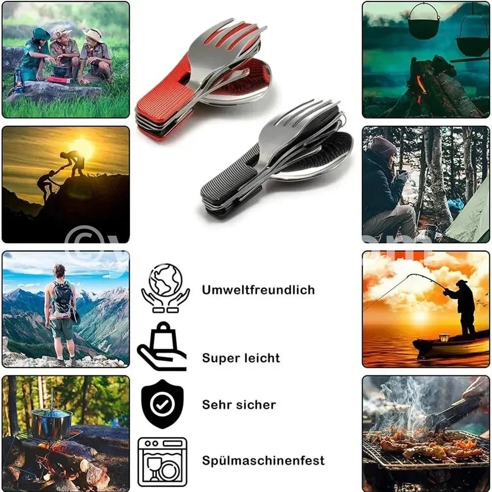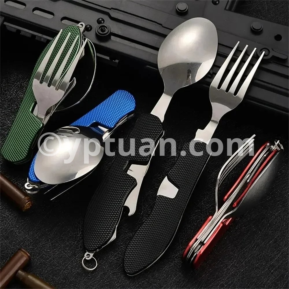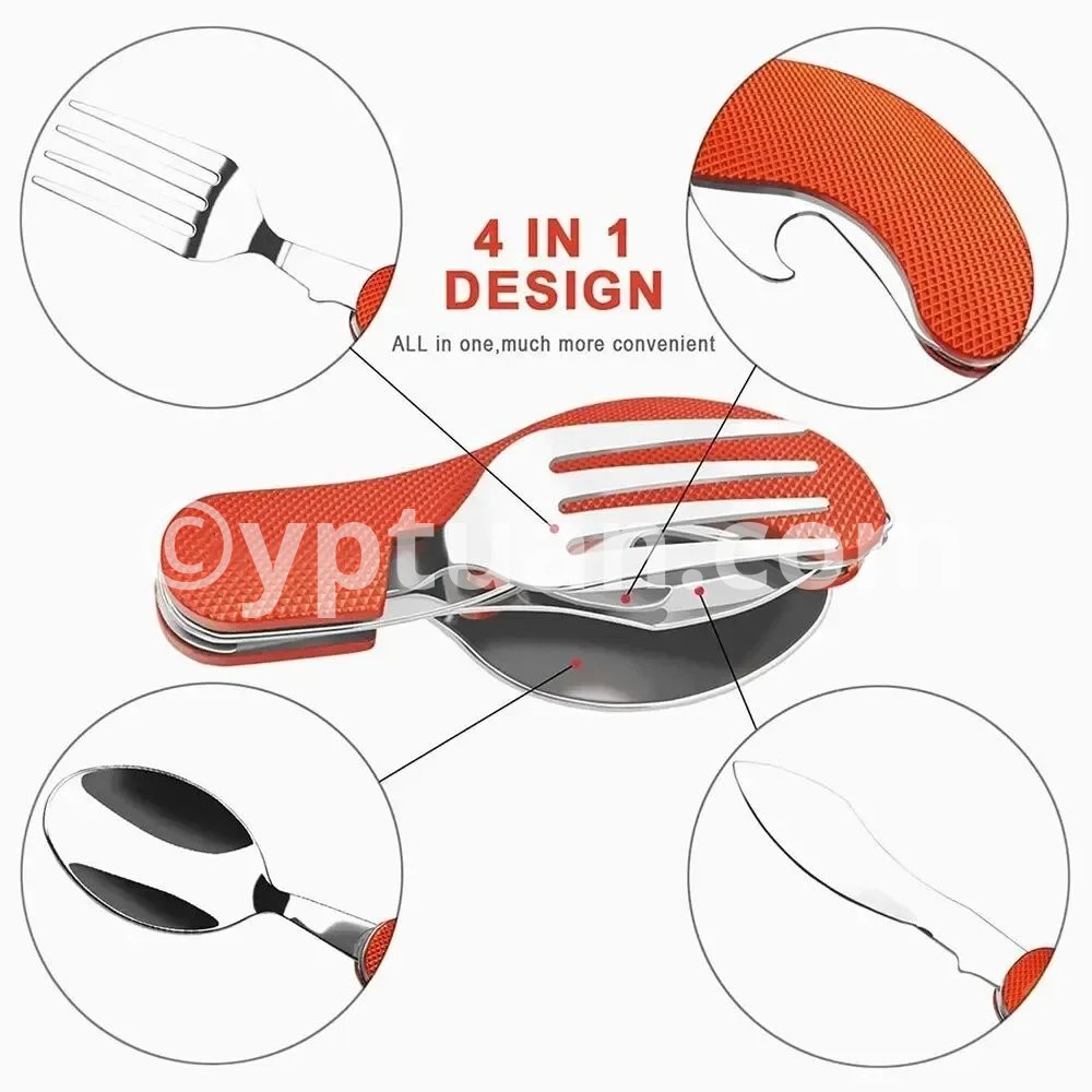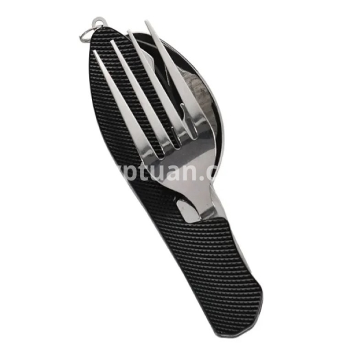• Multi-Functional Set :This set includes a knife, fork, and spoon, providing all your dining needs in one convenient package. • Stainless Steel Material :Crafted from robust stainless steel, this set is designed to withstand the rigors of outdoor use and last for years. • Versatile Use :Perfect for camping, picnics, travel, and other outdoor activities, this set is your ideal dining companion. • Boiling Water Safe :The set is safe to hold boiling water, making it suitable for various cooking scenarios. • Compact and Foldable :The set folds flat for easy storage and portability, making it an ideal choice for outdoor adventures. Description Versatile: This camping tableware set includes a knife, fork, and spoon all in one compact design. Portable: The mini foldable and detachable design makes it easy to carry and store in your backpack or pocket. Durable: Made with high-quality materials, this combination tableware is built to withstand outdoor activities like mountaineering and camping. Easy to clean: The smooth surface and detachable design make it easy to clean and maintain. Perfect for outdoor activities: Whether you're camping, hiking, or exploring, this multi-functional tableware set is a must-have for any outdoor enthusiast. Features: Color: black, red, blue (optional) Material: stainless steel with plastic Folded length: 10.2cm Package included:1 * multifunction tool