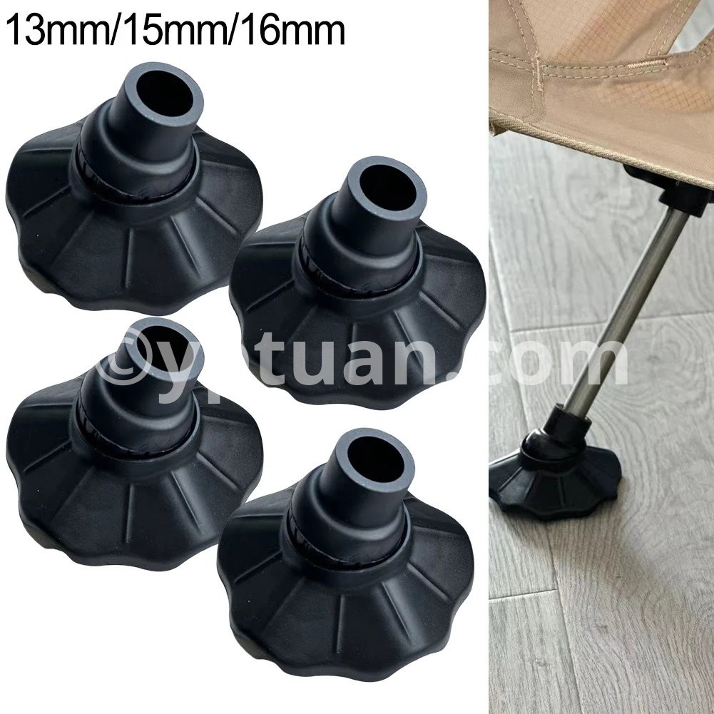 Features: * Made of plastic material, durability and functional * Small size, easy to install * Outdoor folding chair foot for Pads are non-slip and wear-resistant, with adjustable angle design * Usage: to prevent outdoor folding chair feet from sinking into the soil * Three inner diameters are available, 13mm, 15mm, 16mm Specifications: *Product Name: Chair Foot for Pads *Material: Plastic *Size: approx.7.5*7.5*4.3cm Inner Diameter: 13mm/15mm/16mm(As Pictures Show) *Color: Black *Weight: about 120g Package Content: 4 x Chair Foot for Pads Note: 1. The real color of the item may be slightly different from the pictures shown on website caused by many factors such as brightness of your monitor and light brightness. 2. Please allow slight manual measurement deviation for the data(1cm=0.39inch)