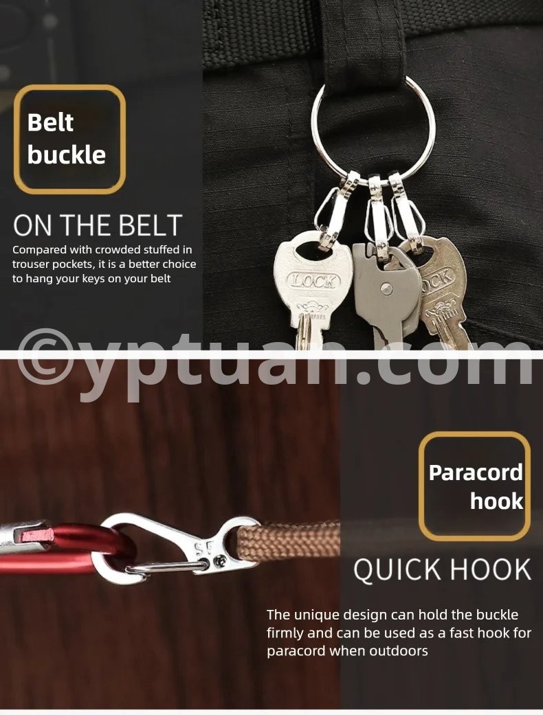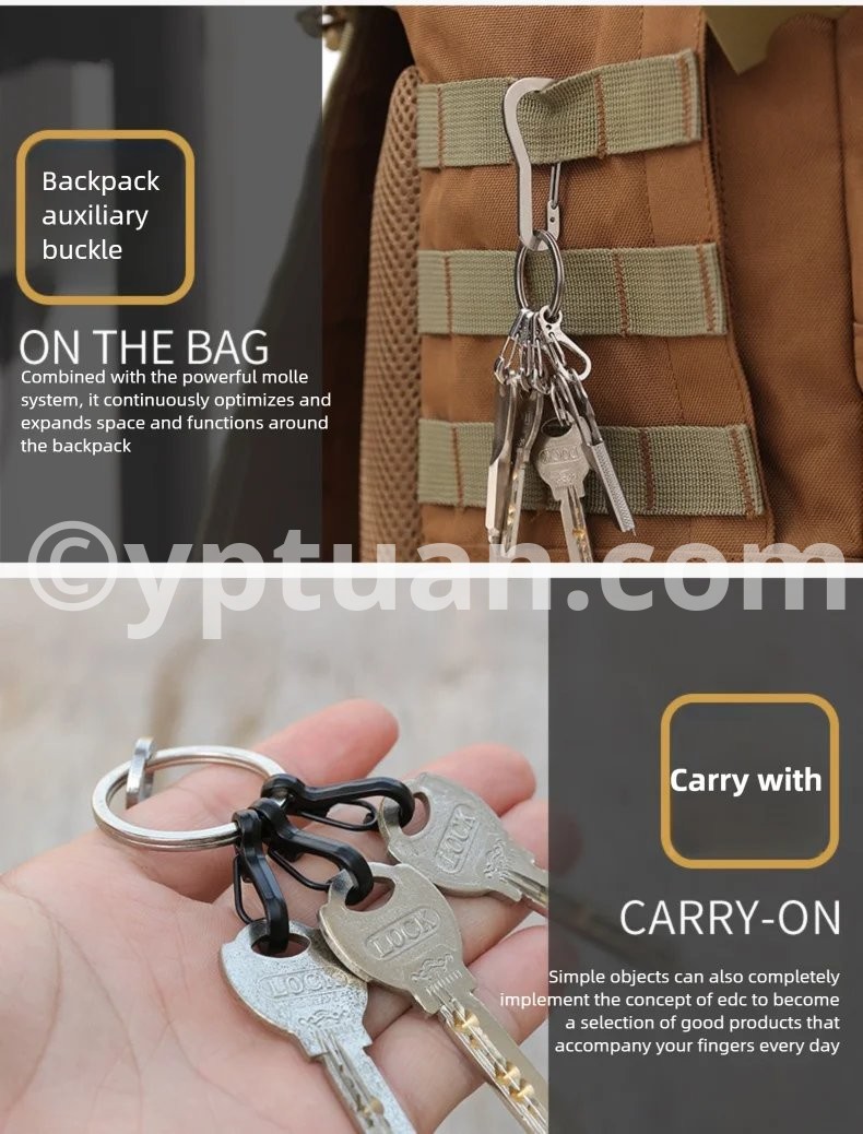 1PC stainless steel Clasp steel Alloy Key Ring Outdoor EDC Tool stainless steel Buckle Hook Outdoor Camping Hover Clip Camping T