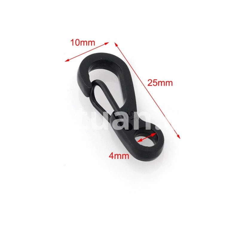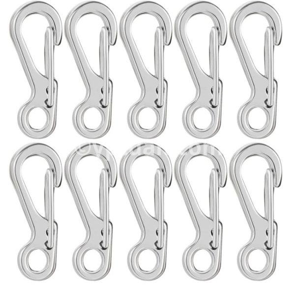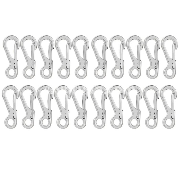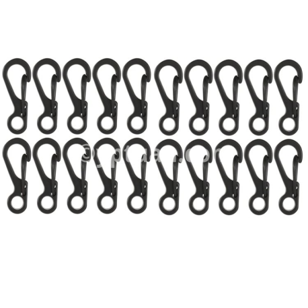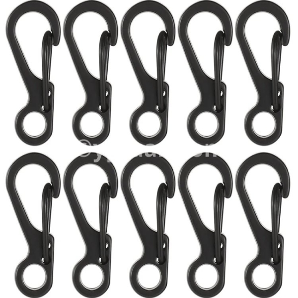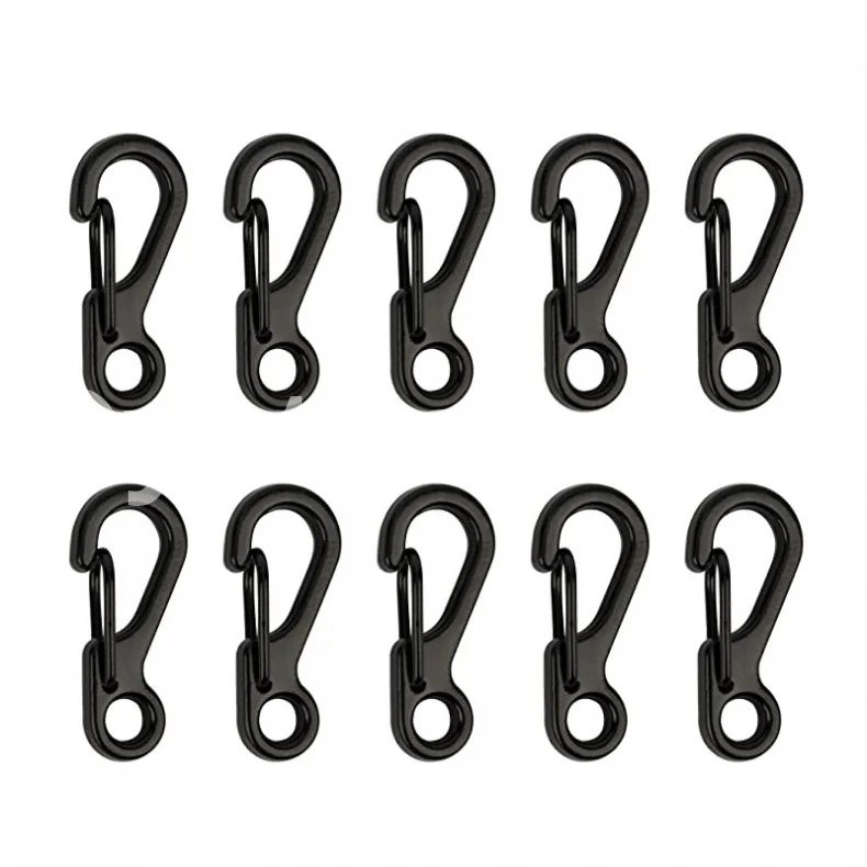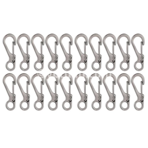 Material:Aluminum Alloy Color: Black/Silver/Gun gray Quantity:5/10/20pcs Length: 2.5cm Max Width: 1cm Hole Diameter: 0.5cm Opening Mouth Width: 0.3cm Size: 1.0L*0.4W inch/2.5cmx1.1cm Features: 1. Mini size, light weight and portable, collect your tiny things easily. 2. Suitable for the keychain, backpack, décor hanging and other EDC items 3. 2.5cm length, 1cm widest, 0.5cm hole in the clip, 0.3cm opening width mini carabiner clips. Not palm size! 4. Strong and durable, max weight rate up to about 15kg/34lb, stiff clip part perfectly secure EDC items and will not easily loose after a long time.