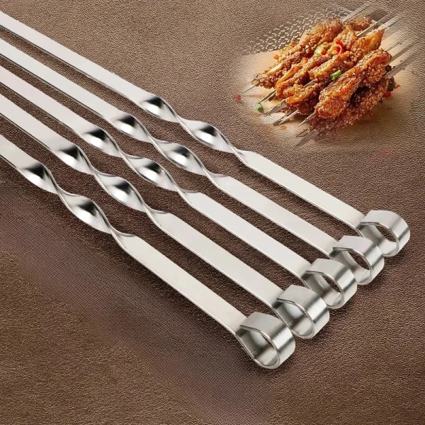 Kitchen Stainless Steel Mutton Kebabs Sticks BBQ Flat Barbecue Forks Outdoor Camping Picnics BBQ Utensils Family Essential