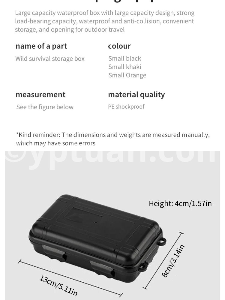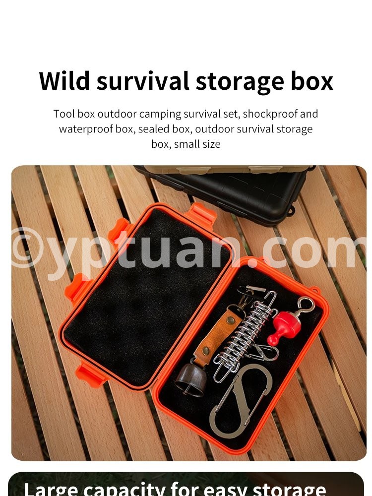 Quick opening and storage: The storage box for field survival is simple and easy to use, and users can quickly open and close the box. This helps to save time and improve the convenience of use.