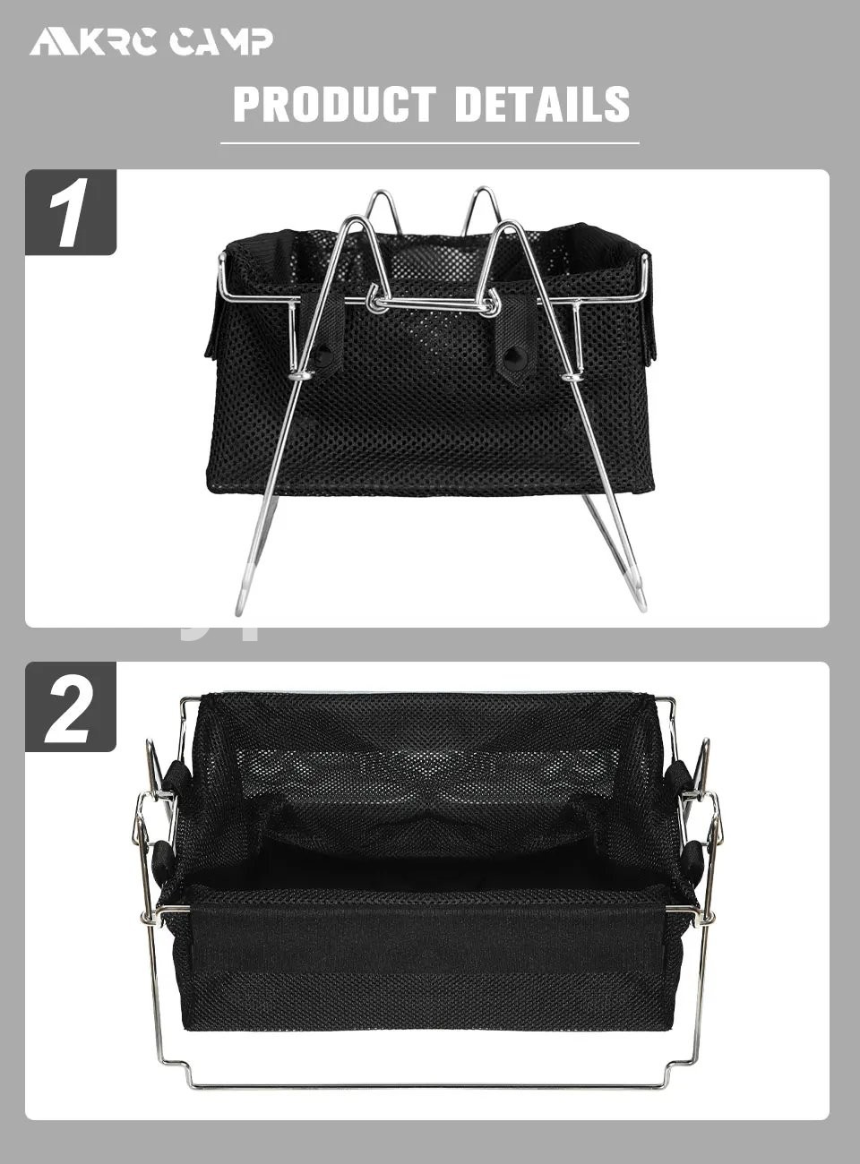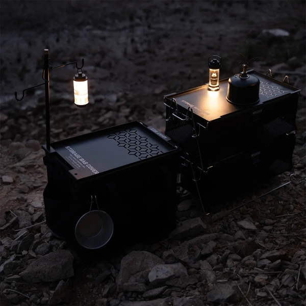 New Outdoor Camping Storage Basket Tactical Wind Detachable Stainless Steel Portable Open Box Variety Folding Bag
