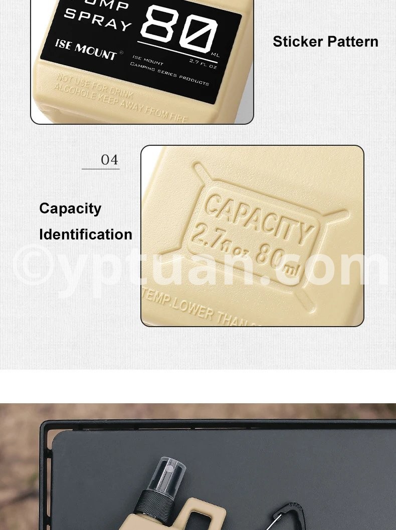 2. HDPE Polyethylene Material: Made from high-density polyethylene (HDPE), this bottle possesses excellent oil resistance, acid and alkali resistance, as well as corrosion resistance. It can safely store alcohol, disinfectant, mosquito repellent, toner, cooling mist, and other essential fluids for your on-the-go needs.
