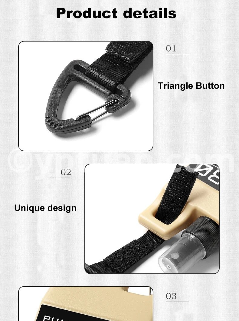 4. With Carabiner Design: The carabiner allows for easy attachment to backpacks, belts, or outdoor gear, ensuring convenient portability and quick access to your spray bottle.