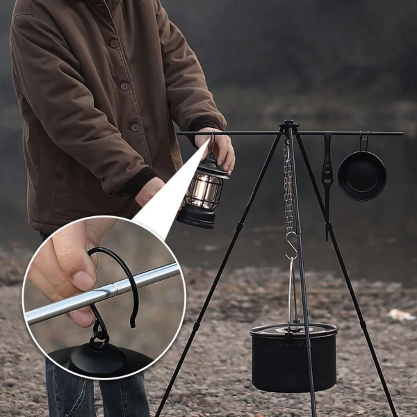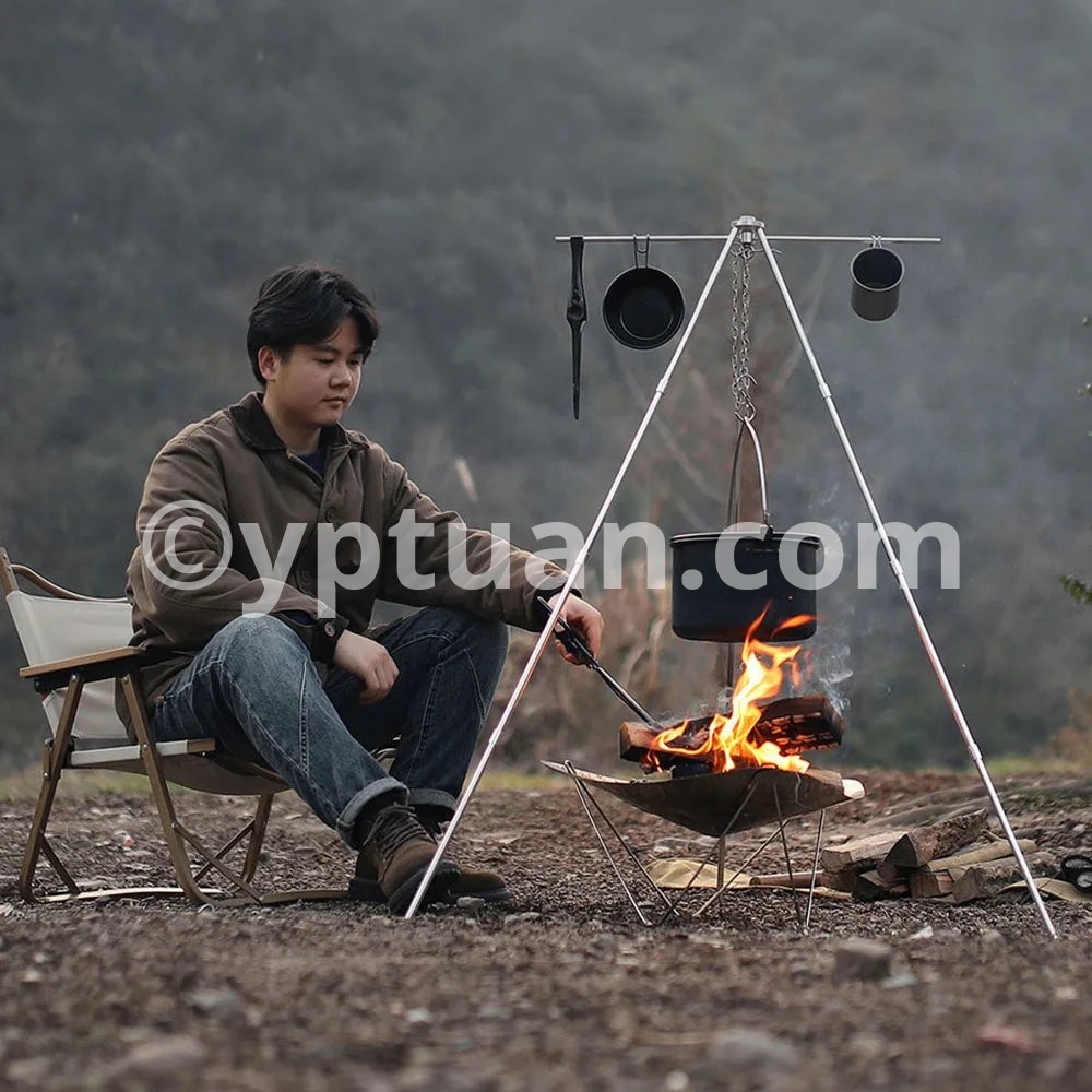 Outdoor Cooking Tripod Portable Aluminum Alloy Combination Burning Rack Camping Picnic Firewood Hanging Pot Rack Grill Tool