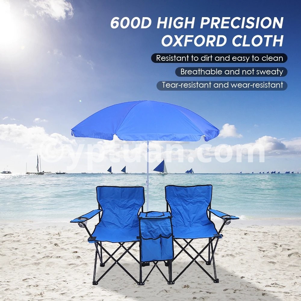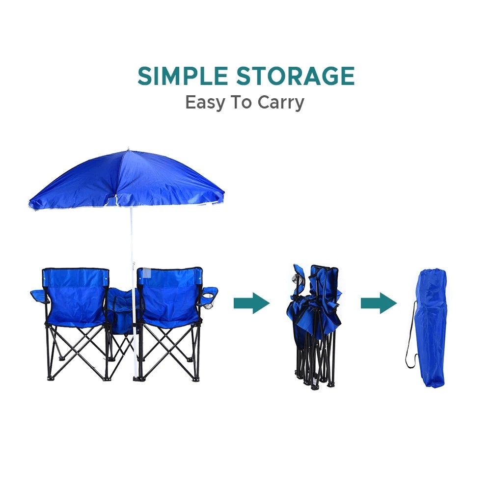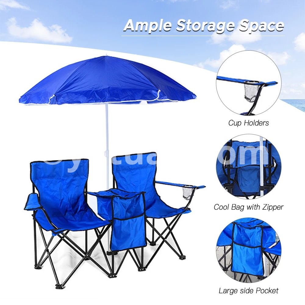 Folding Chair Foldable Portable Camping Outdoor Beach Lawn Chair with Sunshade Ice Bag for Two People
