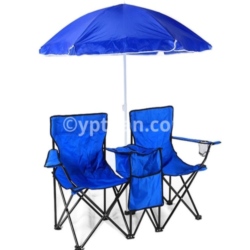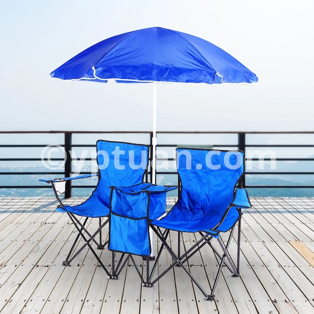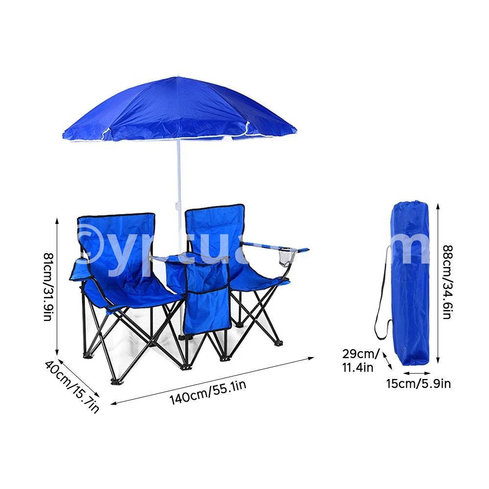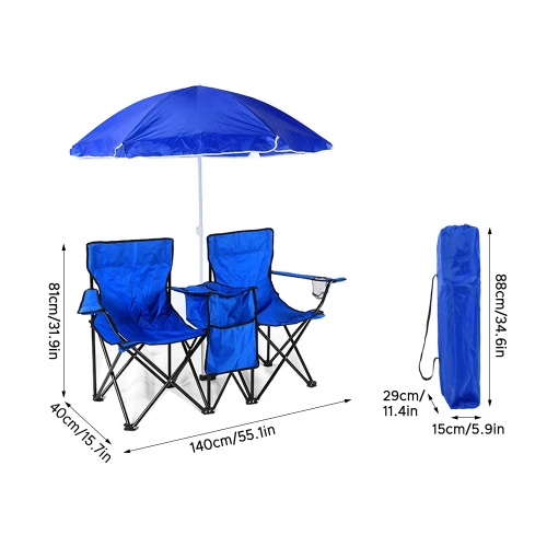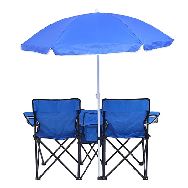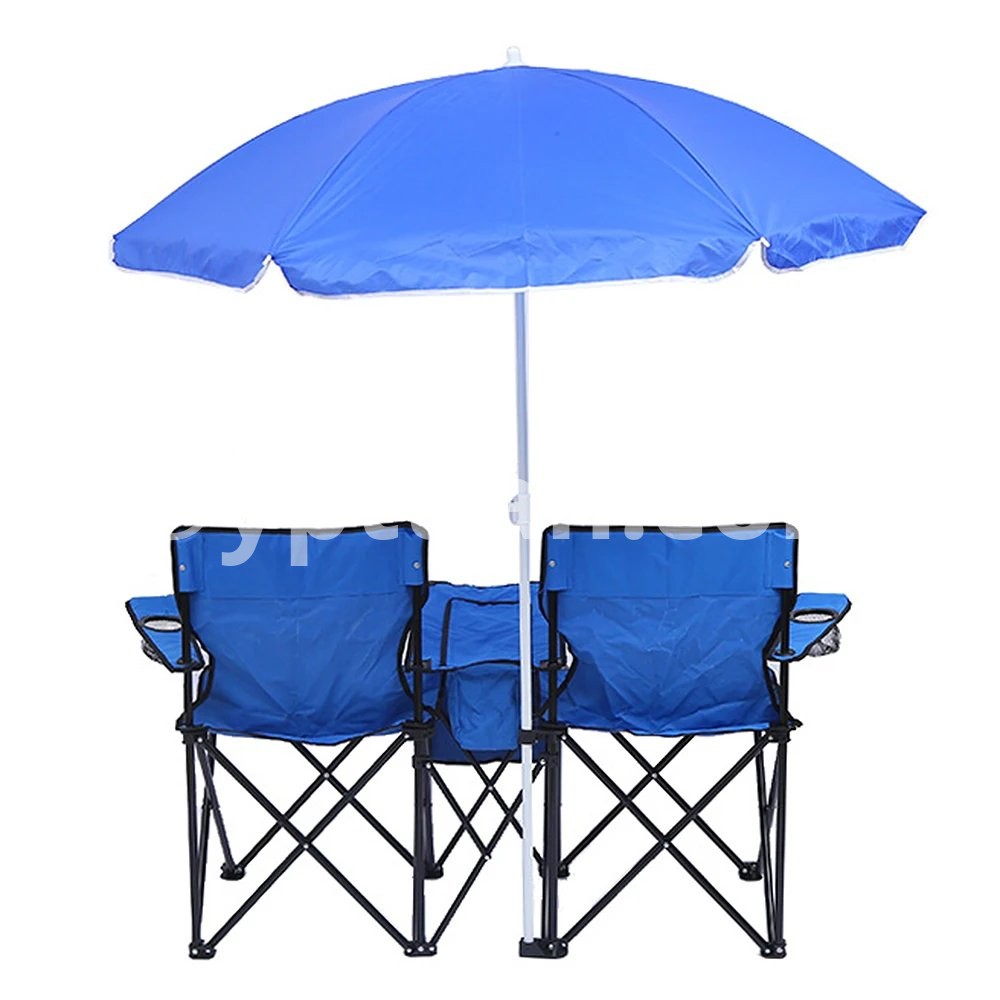 Folding Chair Foldable Portable Camping Outdoor Beach Lawn Chair with Sunshade Ice Bag for Two People