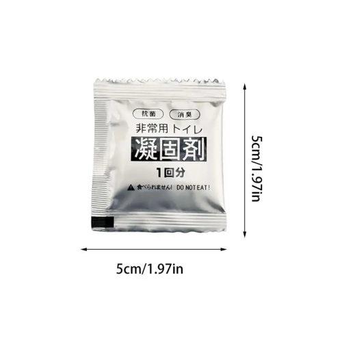 1.Advanced Formula: Using advanced water-absorbent polymers, our Poop Gel for Portable Toilets solidifies liquid waste instantly upon contacts, preventing odors and easing disposal. 2.Easily Carrying: Our Poop Gel for Portable Toilet is the ideal travel companion. With its handy and compact design, this individual pack is convenient to carry in your bag or pocket and can be effortlessly stored anywhere. 3.Multi Functions: Harnessing a potent deodorizing ability, this Portable Toilet gel not only prevents odors but also provides multifunctional health protection. 4.Seamless User Experience: Just pour our Poop Gel into any simple toilet and watch as the feces and urine quickly solidify, making maintenance a breeze and providing ideal convenience. 5.Vast Application: Make the most of your outdoor journey with our Poop Gel for portable toilets. Whether it's camping, hiking or mountain climbing, our no odor formula ensures an easy and refreshing experience. The Coagulant for Toilet is a must-have for outdoor enthusiasts. With strong water absorption and deodorizing ability, it solidifies feces and urine quickly, making it perfect for mountain climbing. Each individual package is convenient for on-the-go use. Specification: Material: coagulant Capacity: about 7g/bag Function: solidification and deodorization Packing List: 12* Portable Toilet Powders