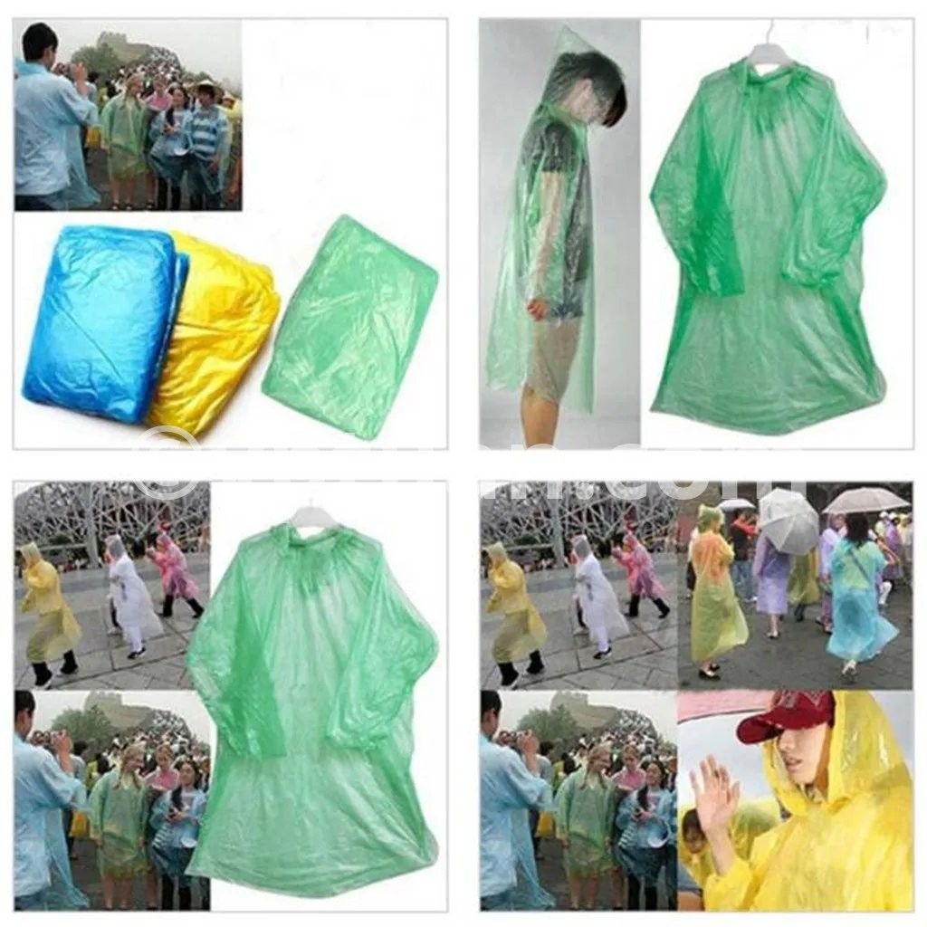 1PCS Disposable Adult Emergency Waterproof Rain Coat Hiking Camping Hood We don't offer the choice of color and style,we will send the product at random,hope you can understand Brand new and high quality Lightweight and easy to carry Very convenient to use One size fits all A must for emergencies, breakdowns, sports/music events, travel, camping, walking, concerts, outdoor events etc Can be folded to be a very small size, easy to store in purse or glove box of car Color: random delivery Quantity: 1pcs Note: Item has no button and color sent by random 1x Raincoat