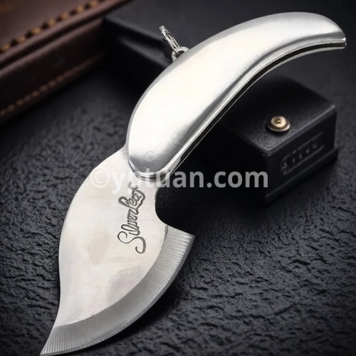 1PC Silver Leaf Stainless Steel Sharp Folding Pocket Keychain Knife Outdoor Survival Tool Perfect for Camping Hiking Gifts