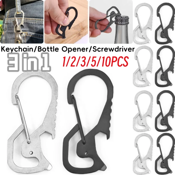 1PC stainless steel Clasp steel Alloy Key Ring Outdoor EDC Tool stainless steel Buckle Hook Outdoor Camping Hover Clip Camping T