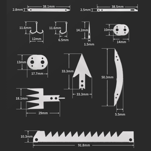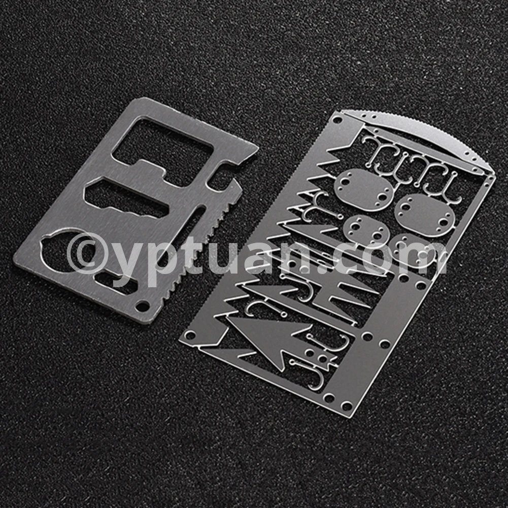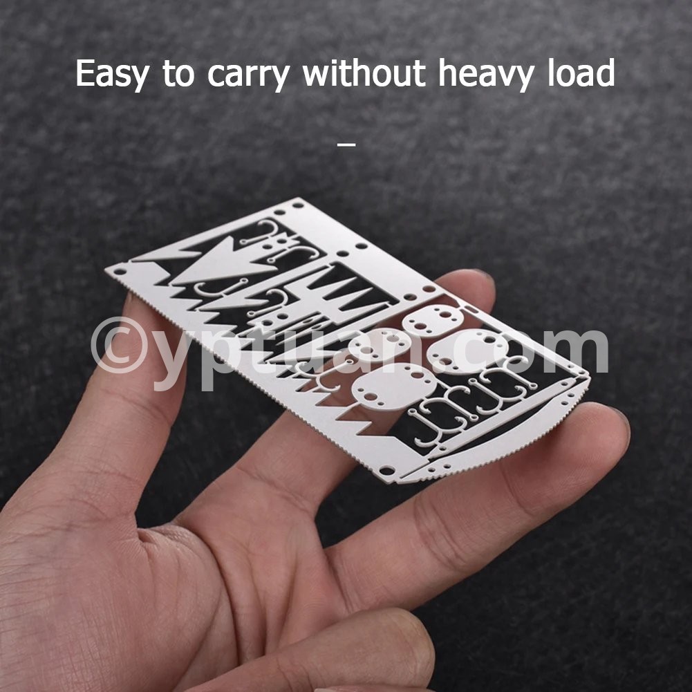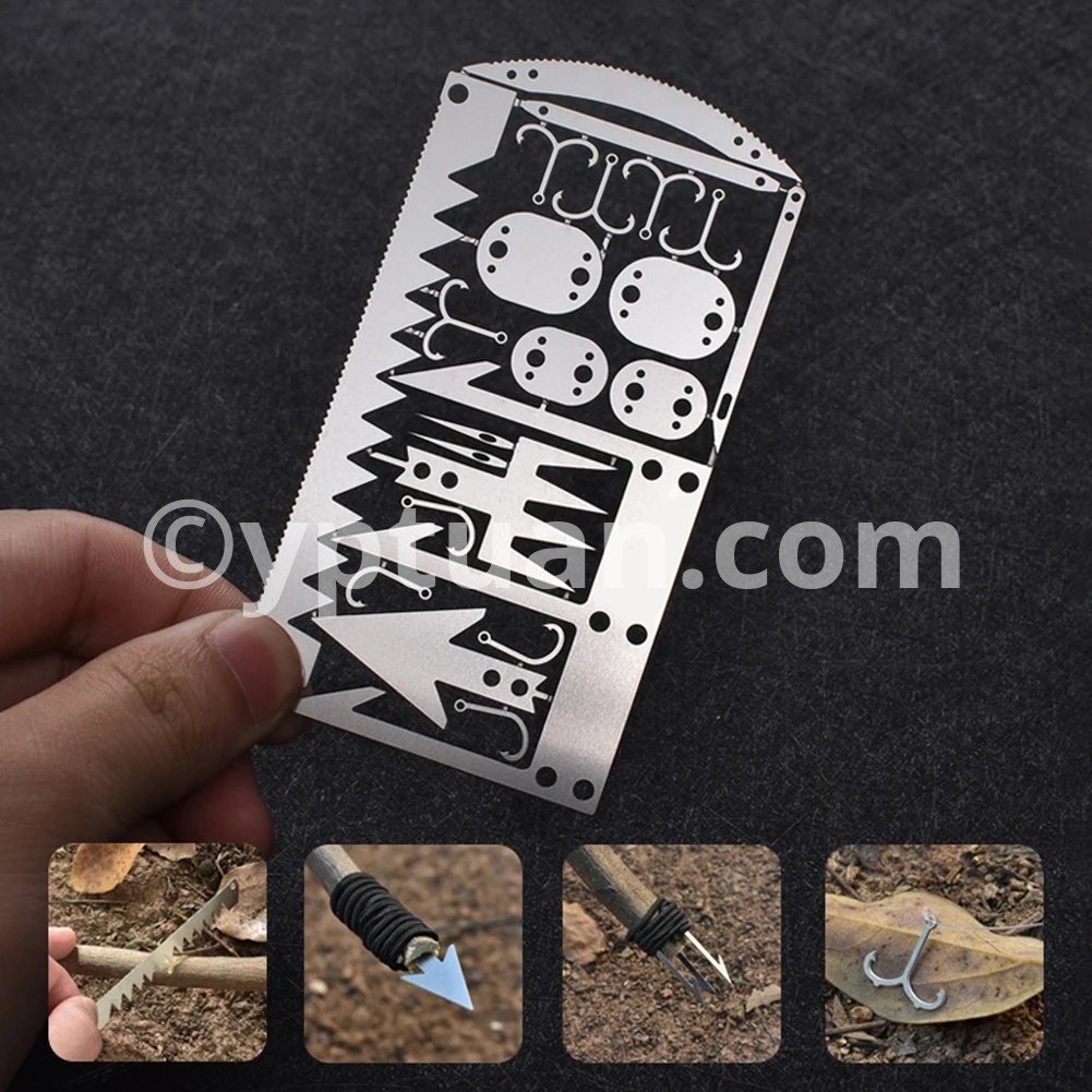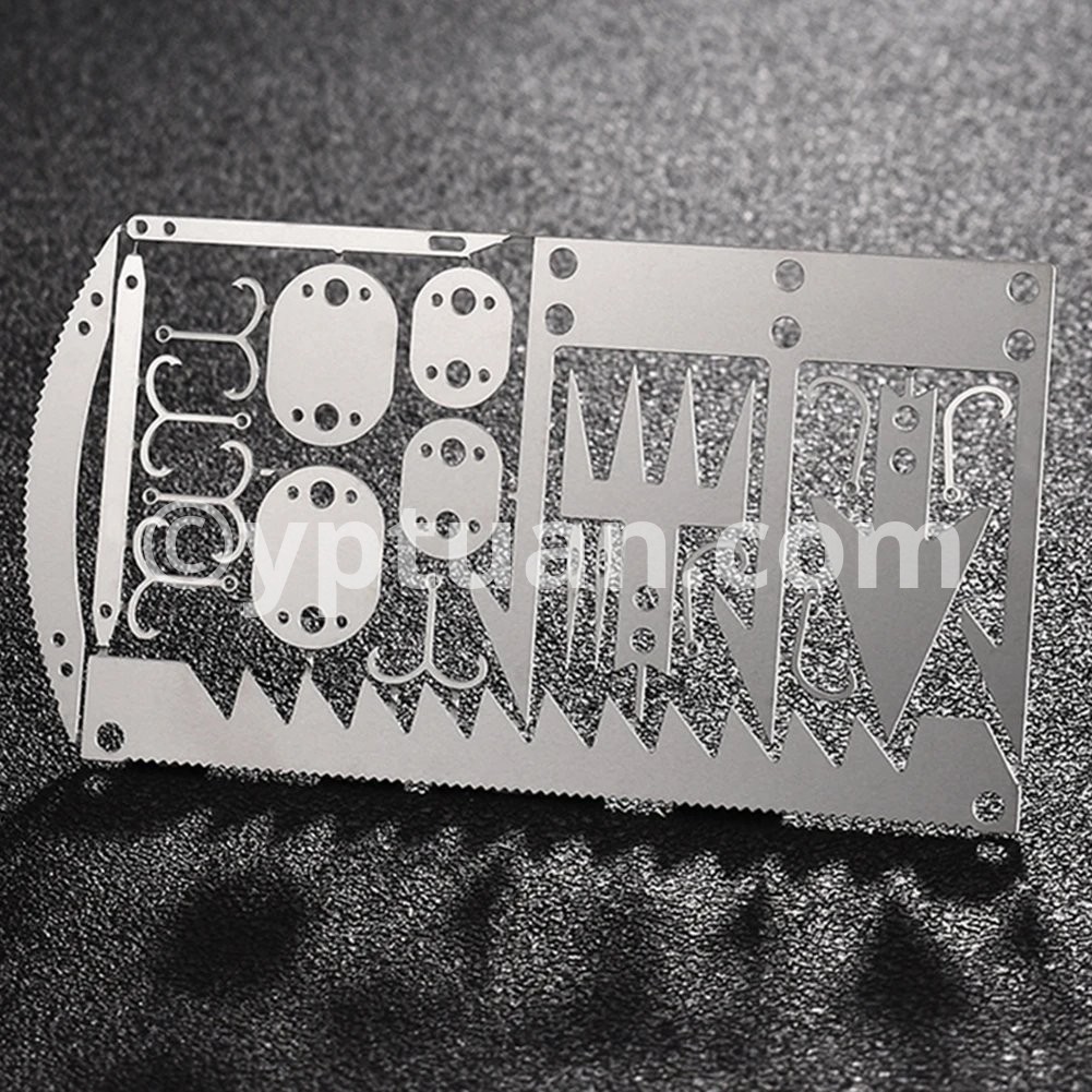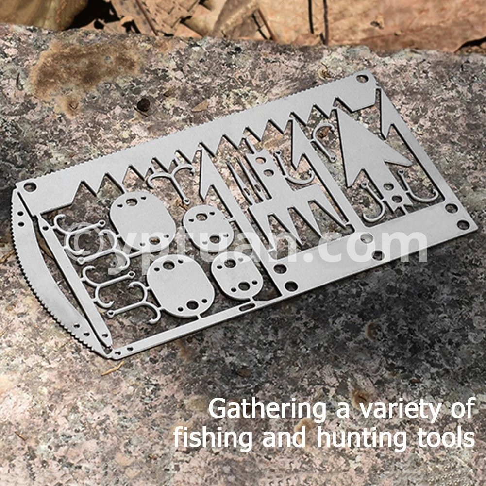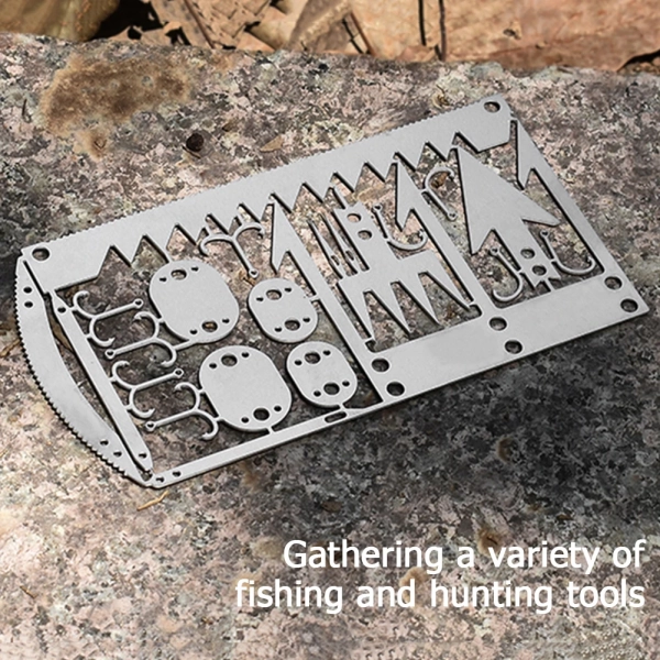 22 in 1 Camping Survival Card Multitool Pocket Knife Fishing Hook Fork Saw Arrow Multifunctional Tool for Outdoor Hunting Features: 1. Contains 22 tools, suitable for outdoor adventure activities, including: survival saw, two-way fishing hook, large fishing fork, arrow, small fishing hook, trap buckle, arc saw, sewing needle, small trap buckle, fishing fork, long trap buckle, tapered needle. 2. Lightweight and convenient, easy to carry.Specifications: Material: Stainless steel Size: 100*52.5mm/3.94*2.07" Weight: 10gNotes: 1. Due to the different monitor and light effect, the actual color of the item might be slightly different from the color showed on the pictures. Thank you! 2. Please allow 1-3cm measuring deviation due to manual measurement.