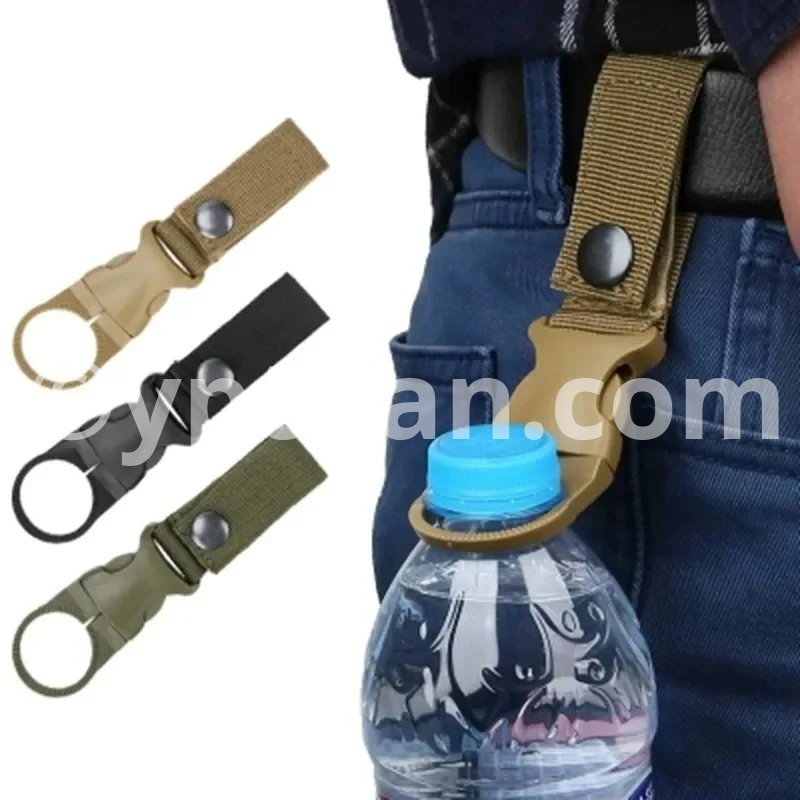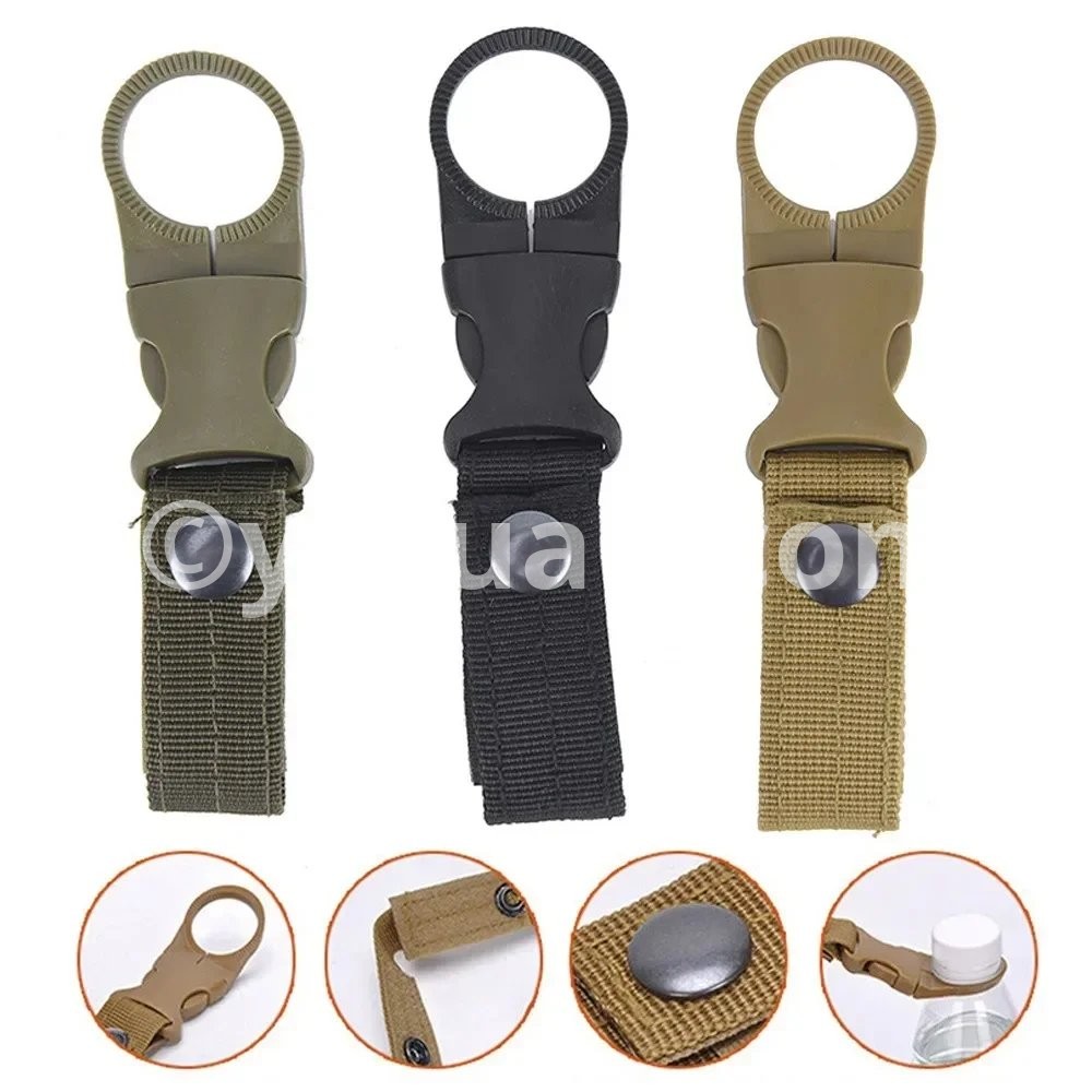 Molle Webbing Backpack Buckle Carabiners Attach Quickdraw Water Bottle Hanger Holder Outdoor Camping Hiking Climbing Accessories Specifications: Material: Double layer 2.5 polypropylene ribbon + plastic hook Expand size: 21*2.5cm Folding size: 13.5*2.5cm Color: Black, oliva green, khaki Package: 1pcs*water bottle holder belt clip Notes: 1. There may be slight size deviations due to manual measurement, different measuring methods and tools. 2. The picture may not reflect the actual color of the item because of different photographing light, angle and display monitor.
