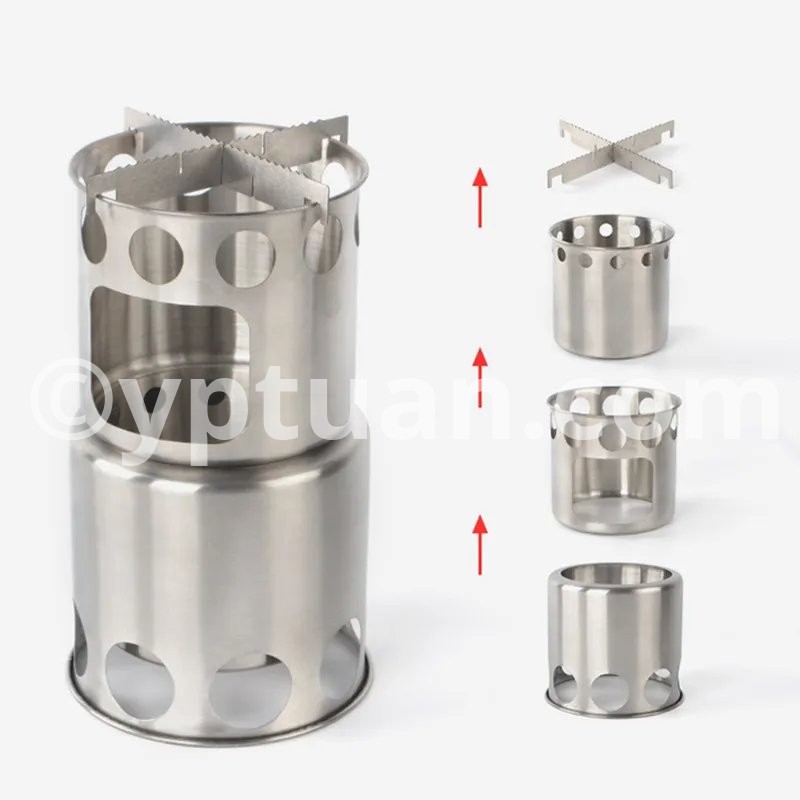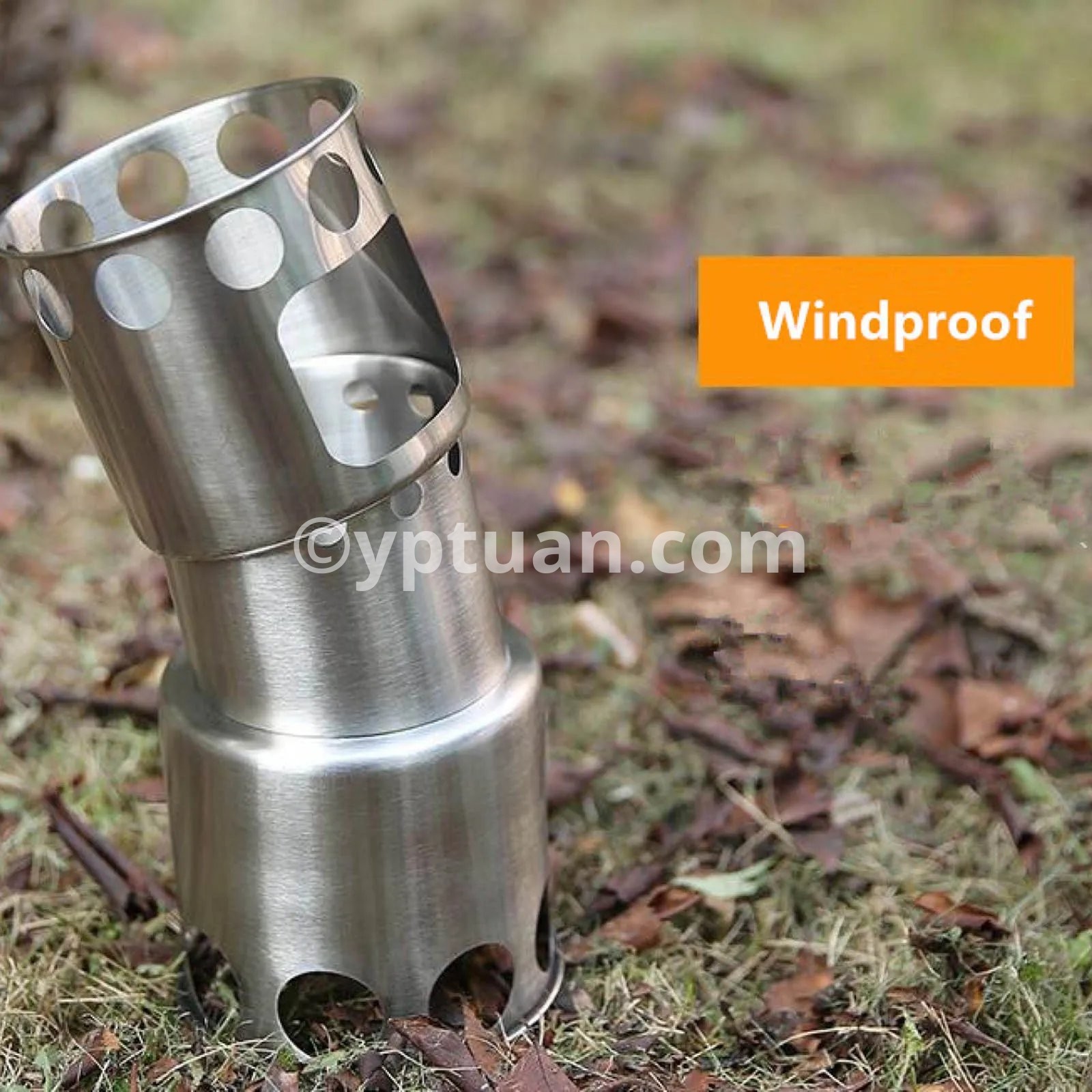 Portable Outdoor 304 Stainless Steel Wood-burning Stove Set Camping Folding Windproof Stove Heating Stove Barbecue Set
