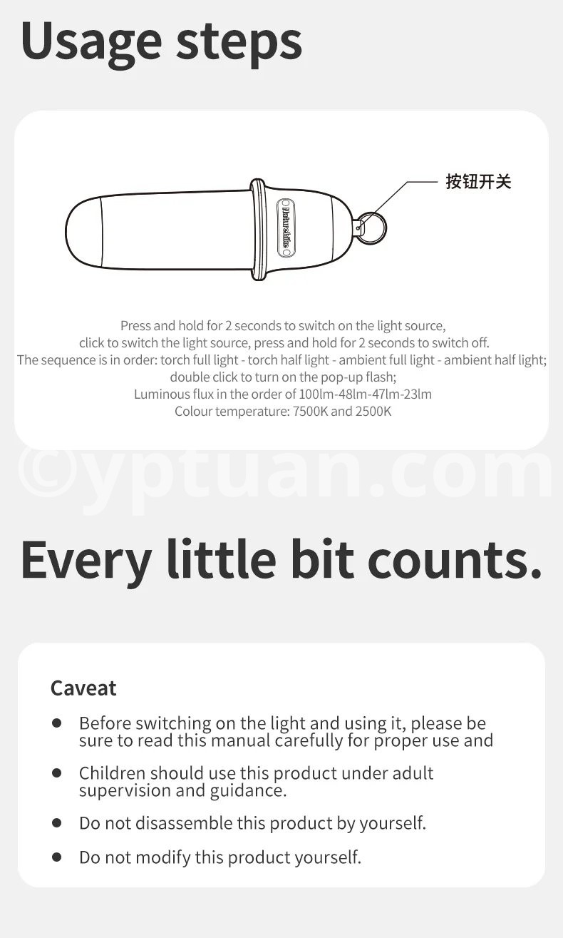 Naturehike Portable Light Camping Torch Waterproof Outdoor Lighting Type-C Ambient light Hiking Ultralight Flashlight Tent light