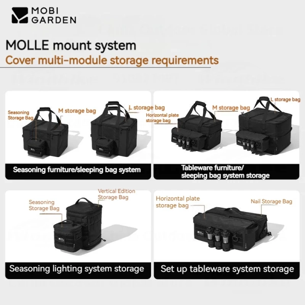 MOBI GARDEN Camping Outdoor Seasoning Storage Bag Portable Picnic Bag MOLLE System Portable Folding Large Capacity Spice Box New