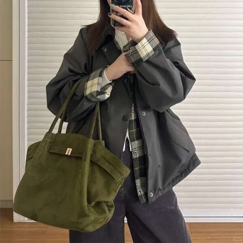 Large Capacity Olive Green Niche Handbag Tote New Autumn Winter Matte Dumpling Commuter Shoulder Bag