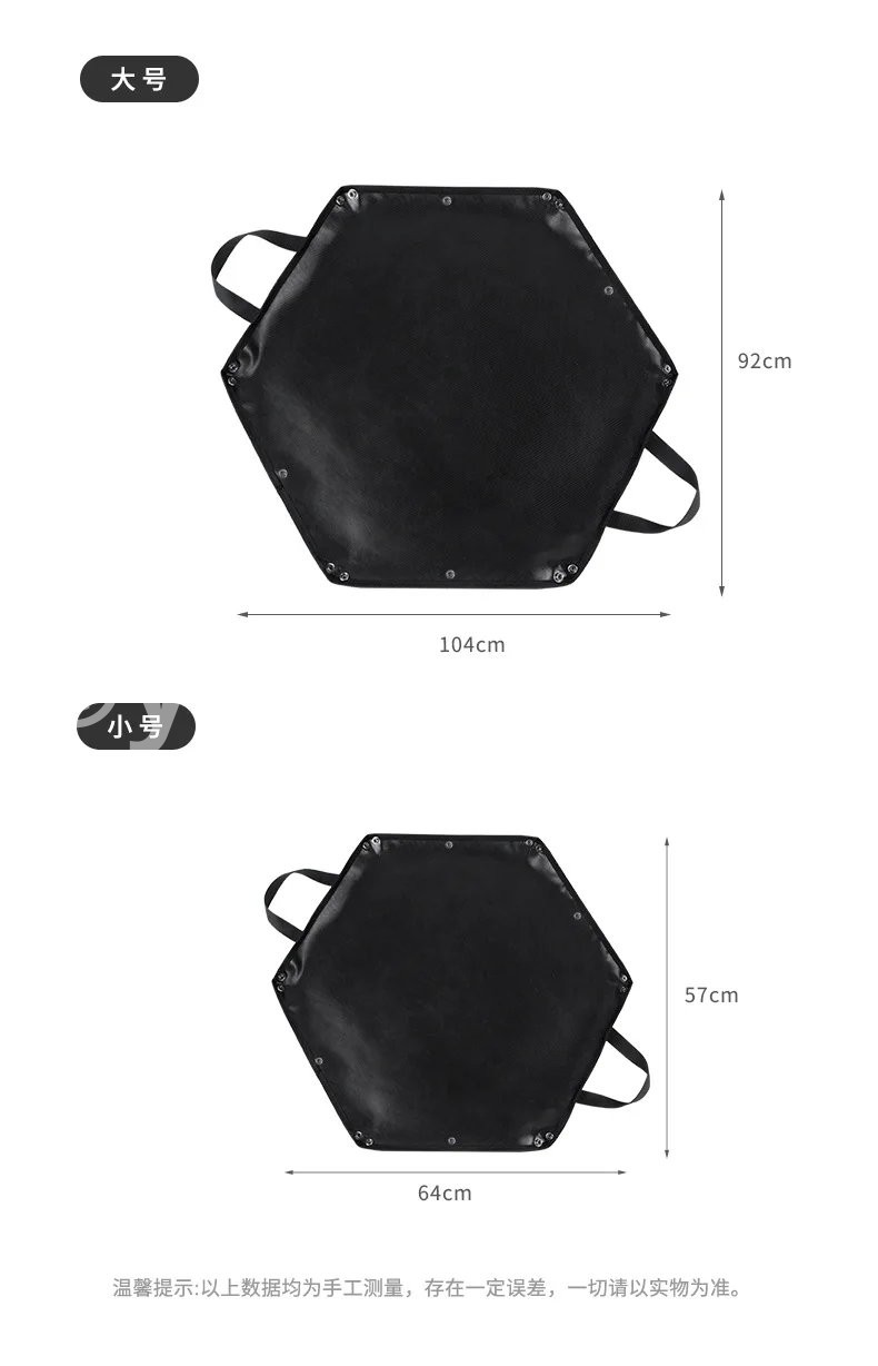 Name: Hexagonal Fire-Resistant Mat Sizes: Large - 10492cm, Small - 6457cm Weight (with Storage Bag): Large - 490g, Small - 220g