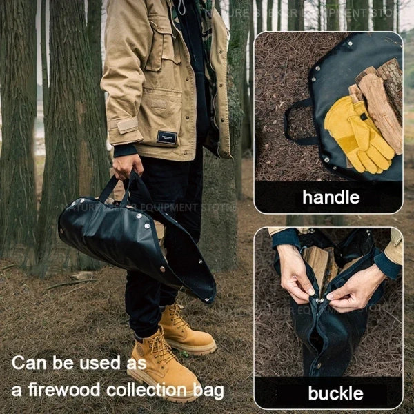 *Fire-Resistant: Reduces heat transfer and protects against fire hazards. *High-Temperature Resistance: Withstands temperatures up to 550°C. The silicone layer may be damaged at temperatures over 260°C and the base fabric at 550°C. Temperature Limitation: Can turn black under brief high-temperature burns, and surface stains can be wiped off without catching fire, but may leave marks. *Edges with Hidden Buckles: Prevents charcoal and ash from scattering. *Two Side Handles: Easy to move without burning your hands. *Expandable Function: Can be used as a firewood bag to contain sparks.