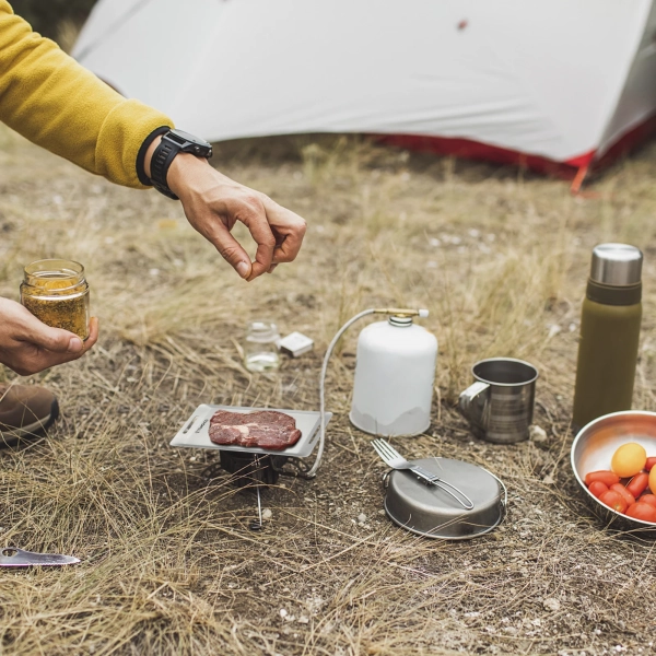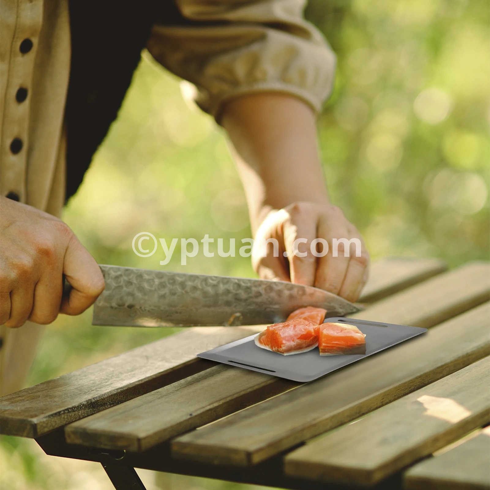 This mini grill pan is made with stainless steel for extreme rigidity and durability. It can also be used as a chopping board, great for BBQ, picnic, camping, traveling, and other outdoor activities.