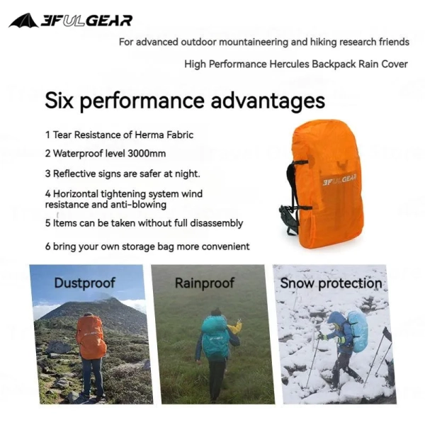 3FUL GEAR Rain Cover Backpack 20-85L Reflective Waterproof Bag Camping Hiking Climbing Dust Raincover Outdoor Sport Night Cyclin