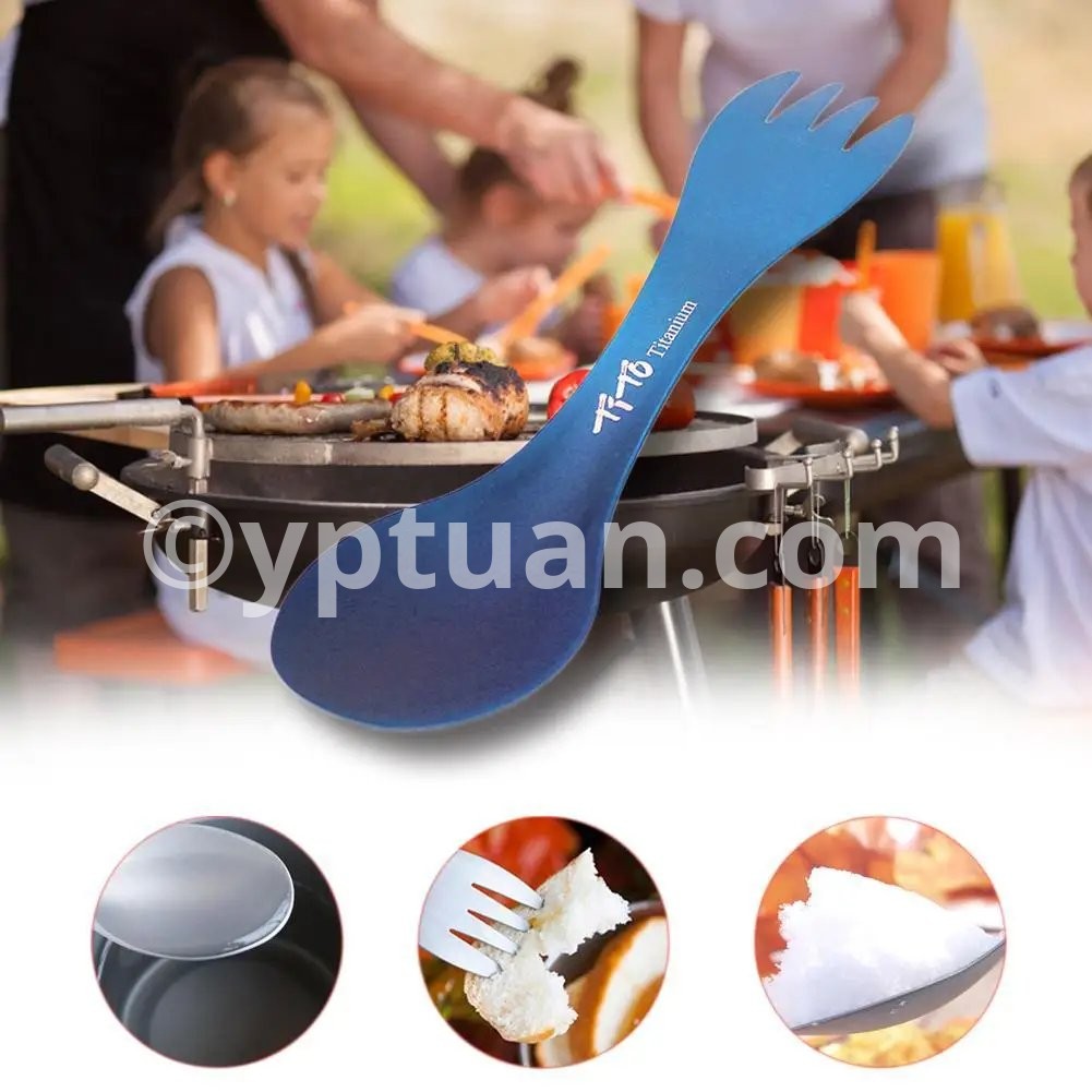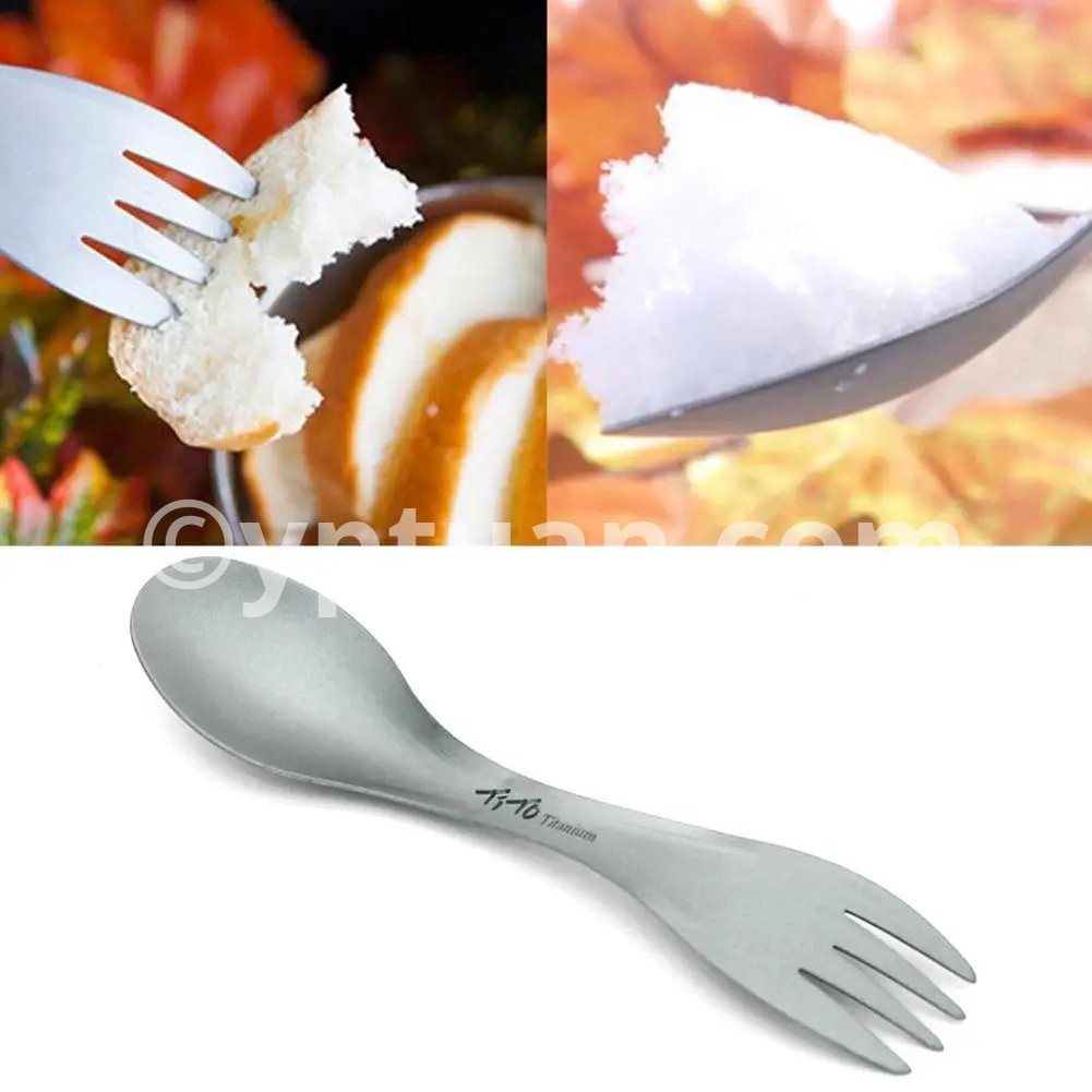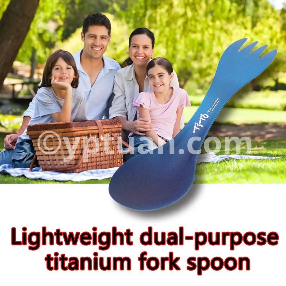 1 PCS Outdoor Camping Picnic Titanium Spoon Tableware Fork Fork Portable Lightweight Spork Titanium Titanium Alloy Spoon