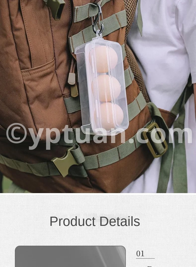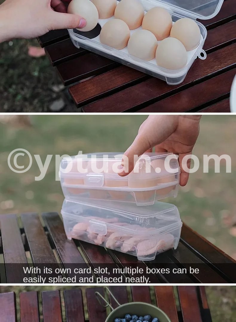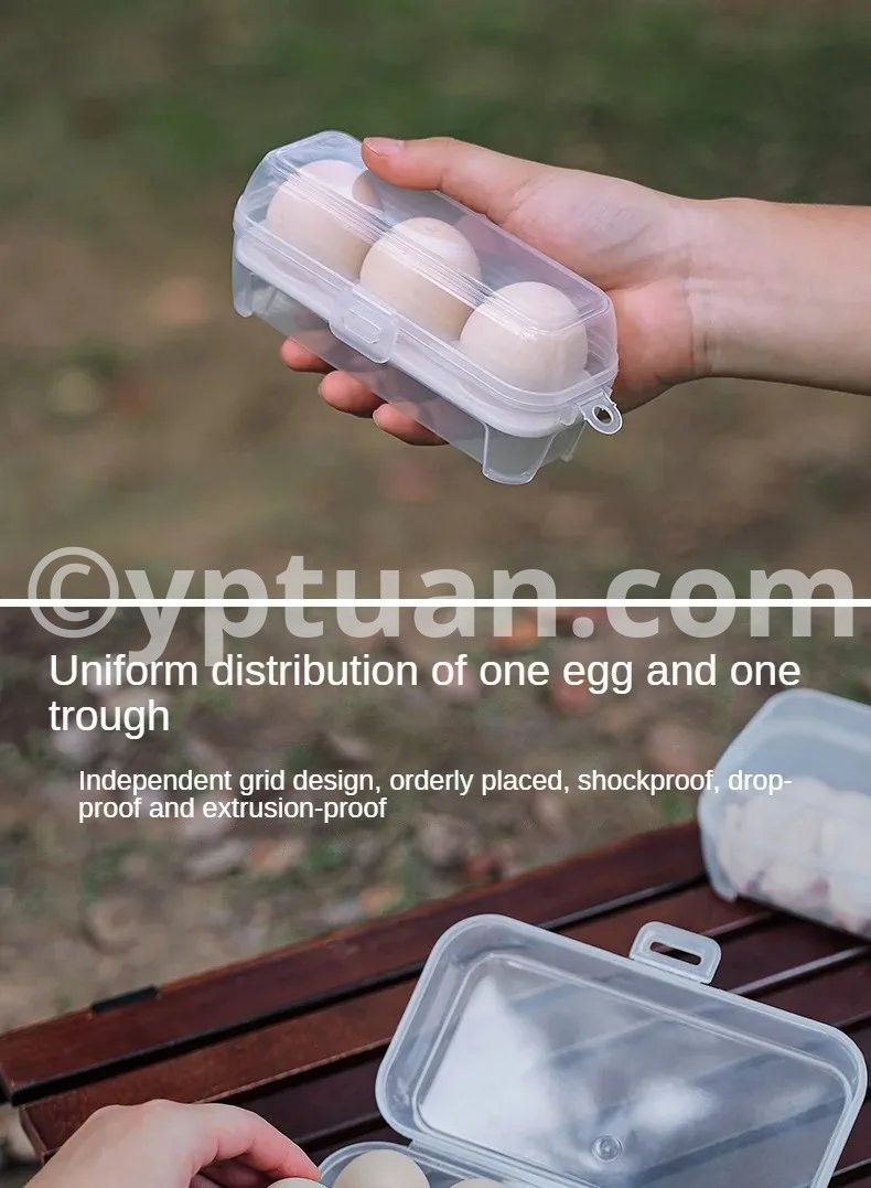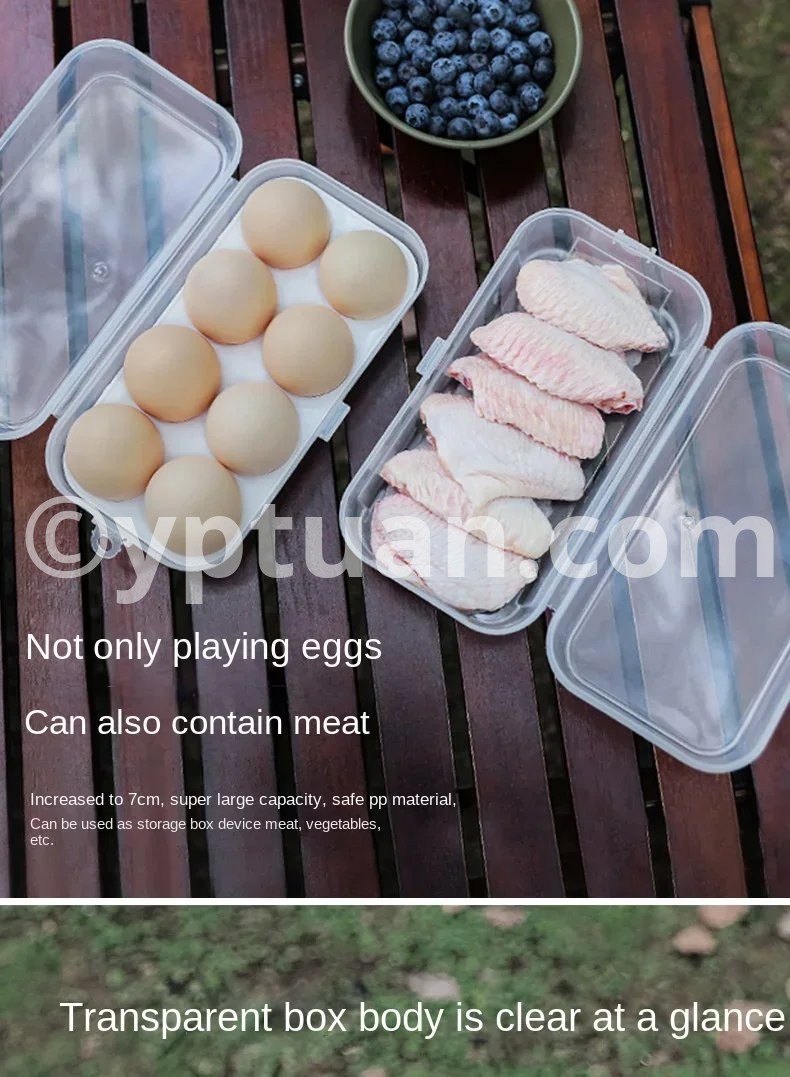 Description : Item Name:Egg storage box Material: Safe pp material, Size: 3 grids: 15.5cm/6.10in * 6cm/2.36in * 6.5cm/2.56in 4 grids: 10.5cm/4.13in * 10.5cm/4.13in * 6.5cm/2.56in 8 grids: 19.5cm/7.68in * 10.5cm//4.13in * 7cm/2.76in Feature: 1. Individual Compartment Design: Each egg has its designated slot in this egg box, ensuring even distribution and organized placement. The independent compartments with shockproof egg trays prevent eggs from colliding, falling, or getting crushed, keeping them safe during transportation or storage. 2. Built-in Slots: The egg holder container comes with built-in slots, allowing multiple boxes to be easily stacked and neatly arranged. This feature ensures efficient use of space and keeps your storage area tidy and organized. 3. Versatile Usage: This eggs box case is not only suitable for storing eggs but also ideal for holding meat, with an extended height of up to 7cm. Its large capacity and secure PP material make it perfect for preserving and organizing various food items such as meats, vegetables, and more. 4. Clear Visibility: The transparent design of the egg storage box allows for full visibility, enabling you to easily see the number of eggs or other contents stored inside. You can effortlessly monitor your inventory without the need to open the box, saving time and effort. 5. Convenient Hanging Hole Design: Hanging hole design, coupled with a D-buckle hanging on the backpack, making this egg holder kitchen container case ideal for outdoor activities like hiking and camping. It frees up space inside the bag while keeping your eggs or other items within easy reach. Package included: 1 x Outdoor Picnic Egg Storage Box Note: Due to the different monitor and light effect, the actual color of the item might be slightly different from the color showed on the pictures. Thank you! Please allow 1-2cm measuring deviation due to manual measurement.