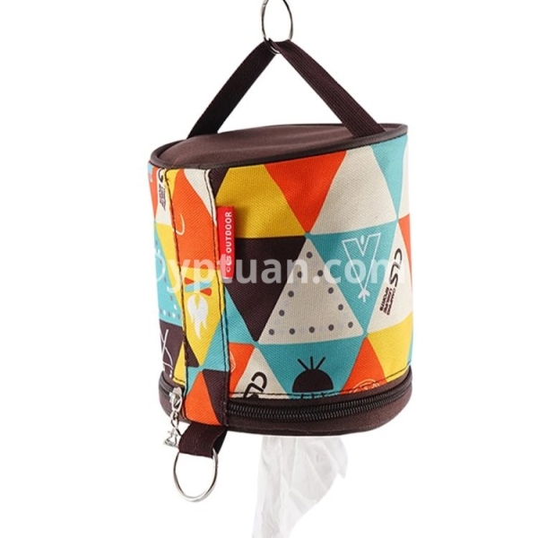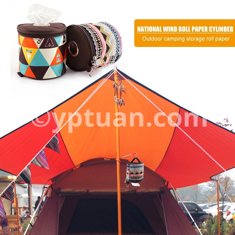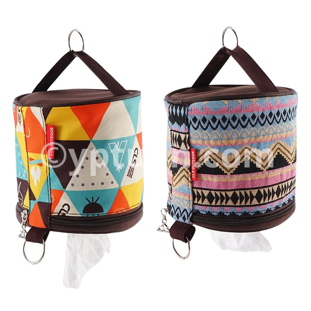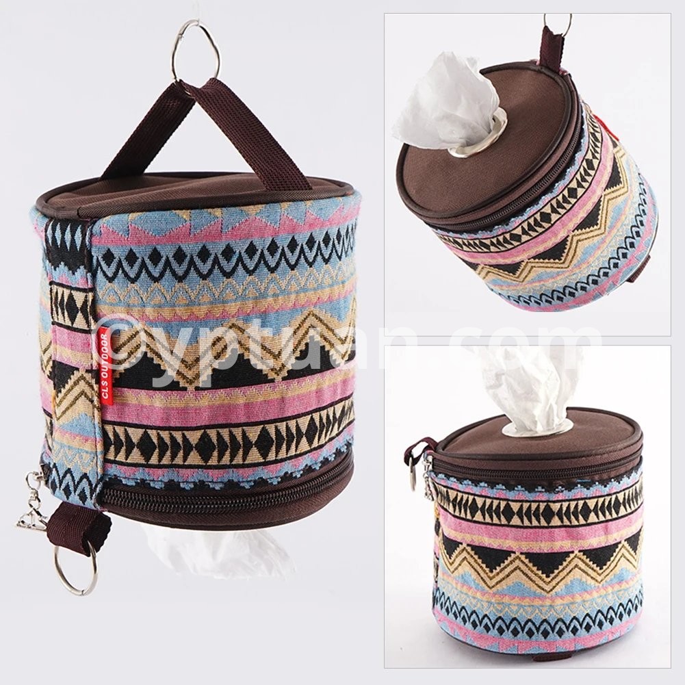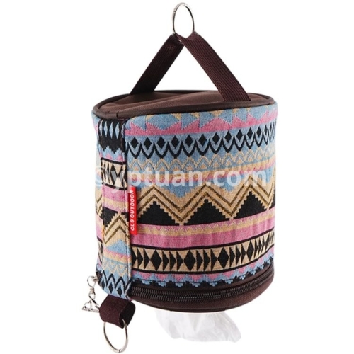 Outdoor Camping Tissue Box Holder Toilet Paper Case National Style Hanging Tissue Holder Feature: 1. Made of polyester material, durable. 2. Store wet wipes to keep them clean and dry, which works well in practical use. 3. The middle and side hooks connect the cover to your clothesline, child's line, or any other place that can be easily connected during camping or other outdoor activities. 4. 2.5cm open ring design, folding design is easy to carry and store. 5. Light and easy to carry, suitable for outdoor camping, hiking, picnic, etc.Specification: Color: Blue, Decorative pattern Weight: about 90~100g Size: Packing up diameter 145mm* thickness 20mm, using diameter 145mm* height 130mmNote: There may be slight size deviations due to manual measurement, different measuring methods and tools. The picture may not reflect the actual color of the item because of different photographing light, angle and display monitor.