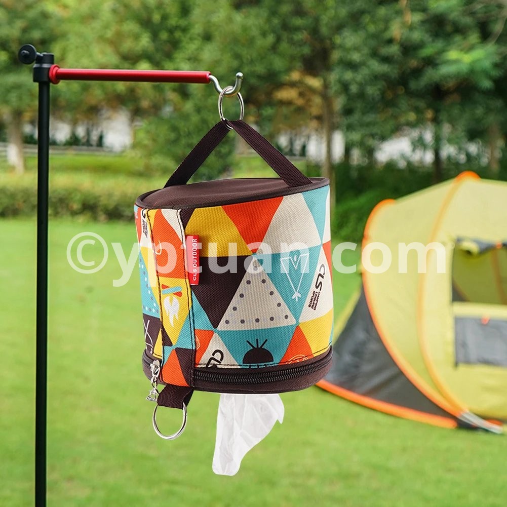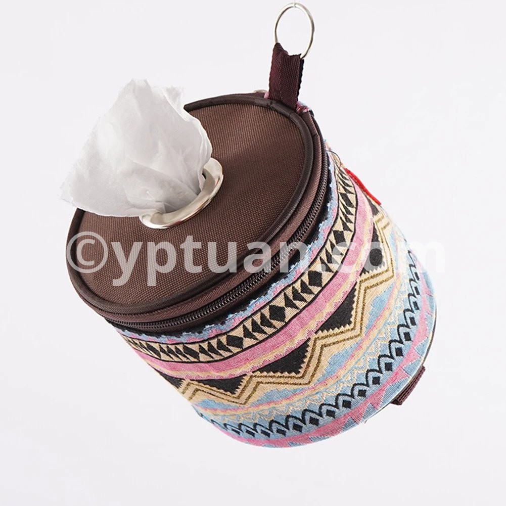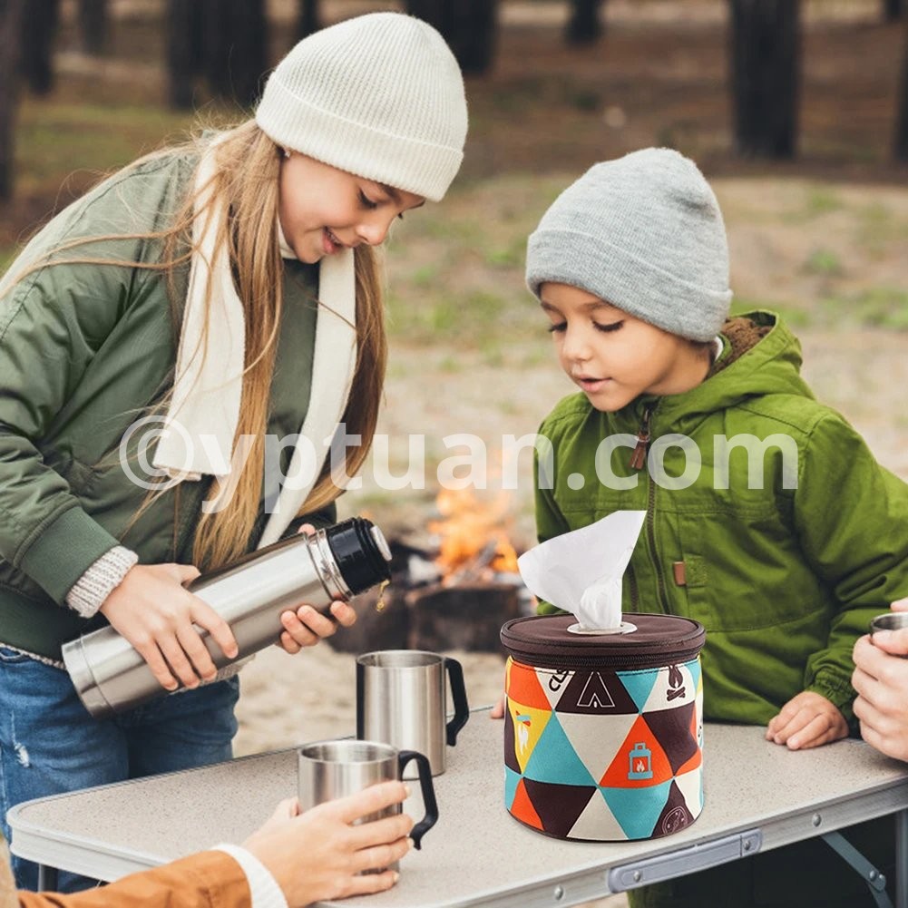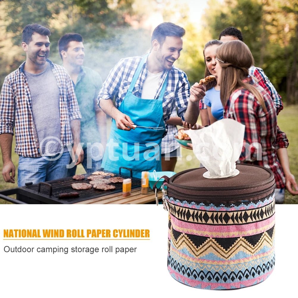 Outdoor Camping Tissue Box Holder Toilet Paper Case National Style Hanging Tissue Holder Feature: 1. Made of polyester material, durable. 2. Store wet wipes to keep them clean and dry, which works well in practical use. 3. The middle and side hooks connect the cover to your clothesline, child's line, or any other place that can be easily connected during camping or other outdoor activities. 4. 2.5cm open ring design, folding design is easy to carry and store. 5. Light and easy to carry, suitable for outdoor camping, hiking, picnic, etc.Specification: Color: Blue, Decorative pattern Weight: about 90~100g Size: Packing up diameter 145mm* thickness 20mm, using diameter 145mm* height 130mmNote: There may be slight size deviations due to manual measurement, different measuring methods and tools. The picture may not reflect the actual color of the item because of different photographing light, angle and display monitor.