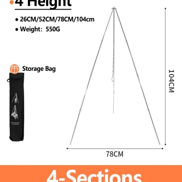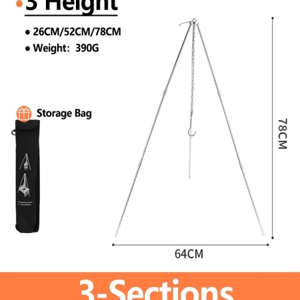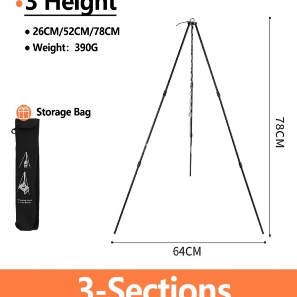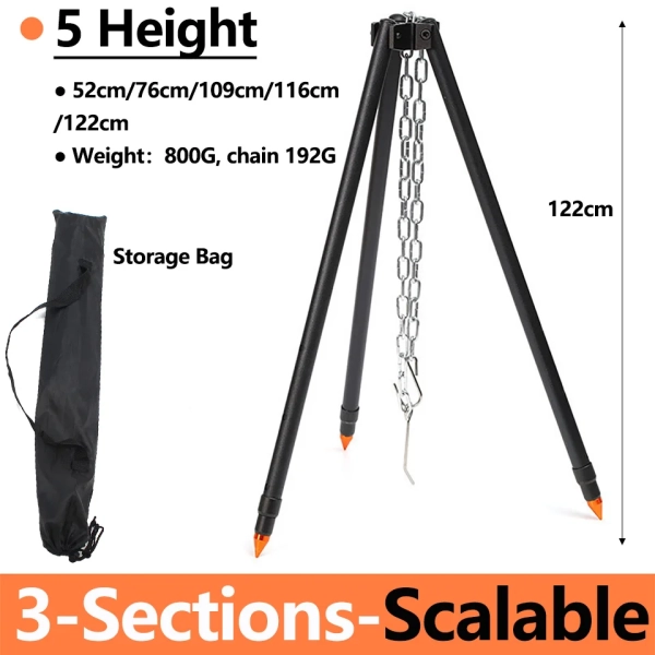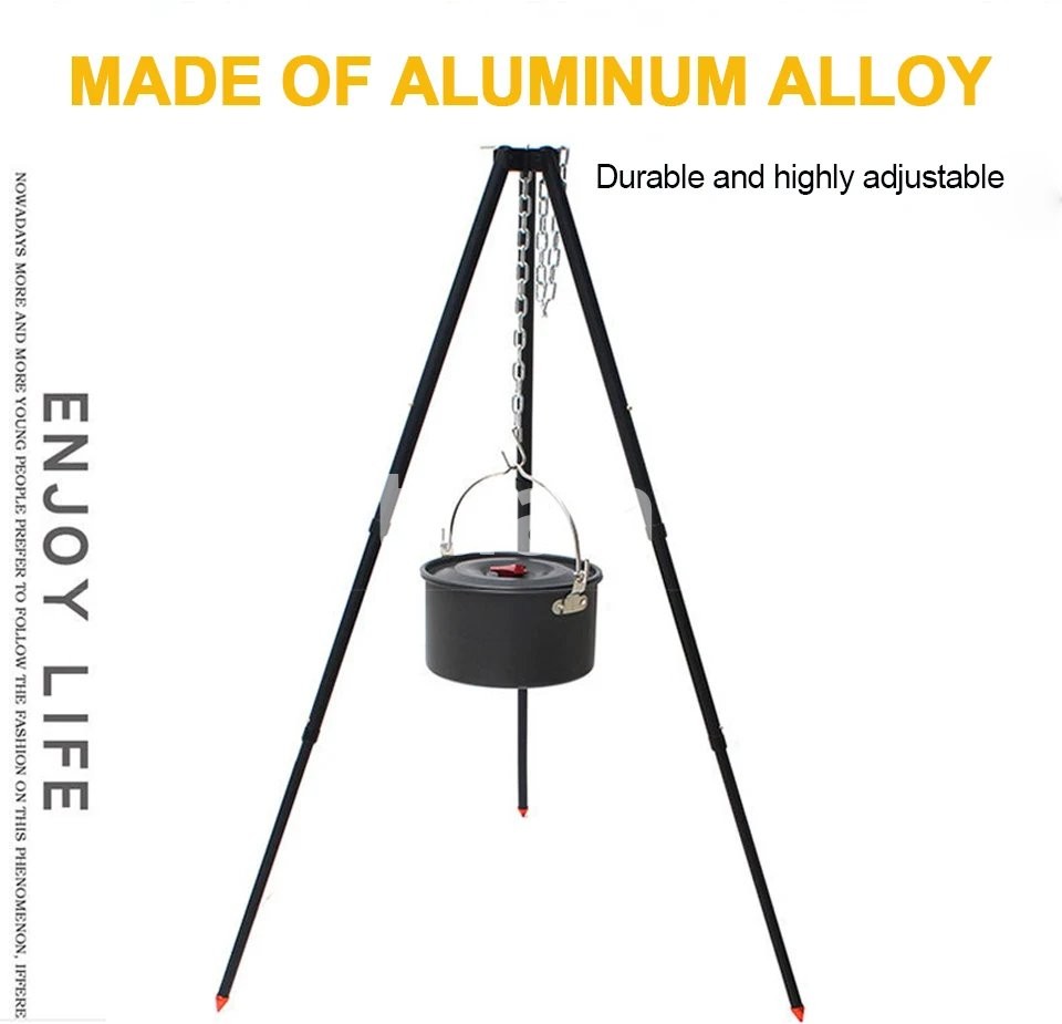 Camping Campfire Tripod for Hanging Pot Outdoor Cookware Picnic Cooking Pot Grill Rack Barbecue Support Aluminum Alloy Tripod