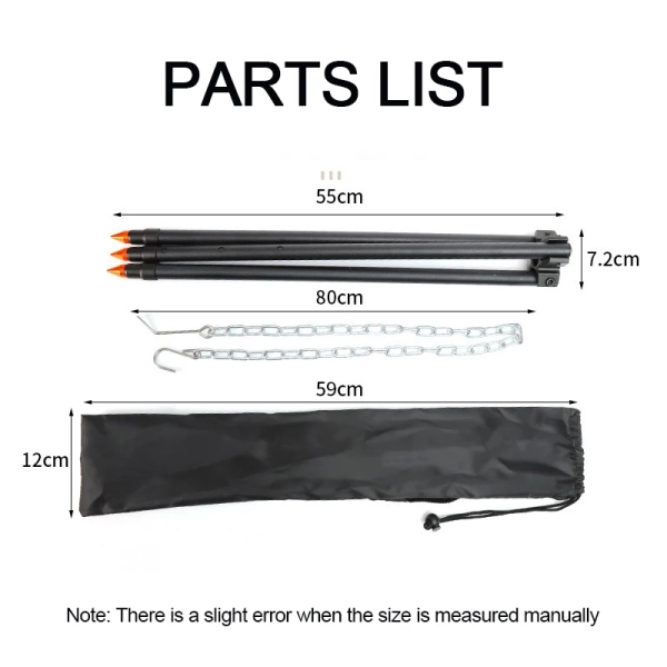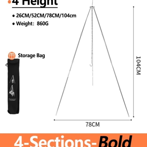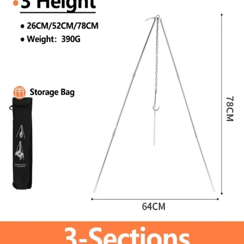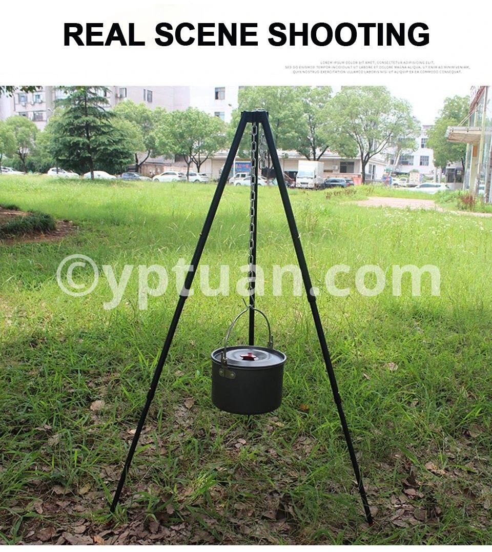 ▶ Alluminum alloy material, keep a long service life. ▶ Small and portable, easy to carry and storage. ▶ Solid tripod construction gives maximum stability, keeps stable when use it. ▶ Adjustable chain to hang pan, oven and pot over campfire. ▶ Perfect accessory for cooking great food in the great outdoors.