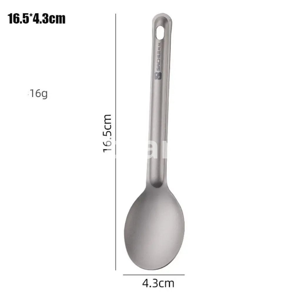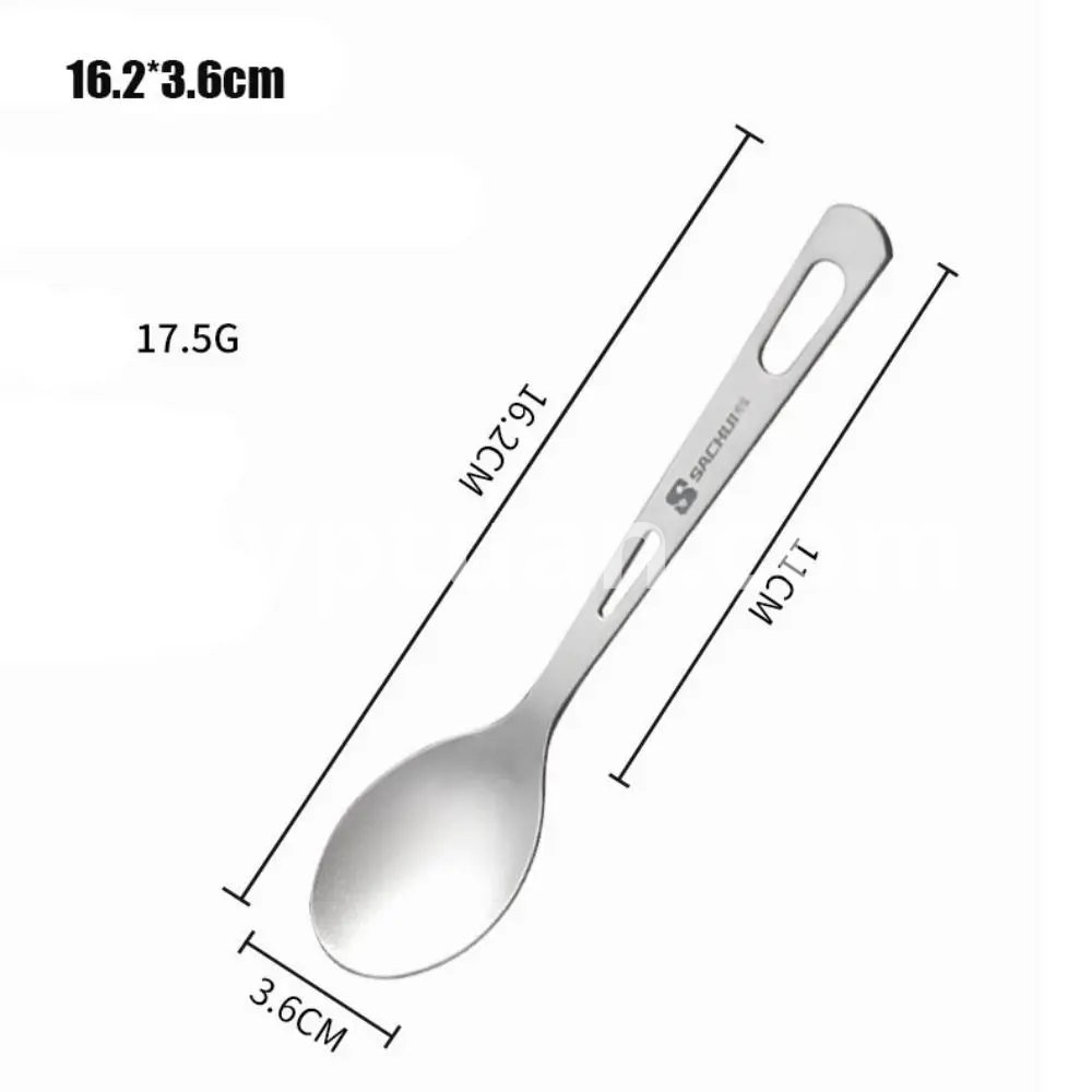 Brand new with high quality Type:Titanium Cookware Color:Silver Material:Titanium Quantity:1pc Length: Style 1:16.5*4.3cm/6.5*1.69in Style 2:16.5*4.3cm/6.5*1.69in Style 3:16.2*3.6cm/6.38*1.42in Style 4:16.5*2.2cm/6.5*0.87in Style 5:18.5*1.7cm/7.28*0.67in Style 6:16.2*3.5cm/6.38*1.38in Style 7:16.2*3.5cm/6.38*1.38in Features: Lightweight, titanium construction. Features a long handle to reach the bottle corner easily. Polished bowl with flat head for smooth . A hole on the handle for convenient attachment to a key chain or carabiner. Package includes: 1pc Titanium Tableware Note: 1.1cm=10mm=0.39inch 2.Please allow 0-2cm error due to manual measurement. pls make sure you do not mind before you bid. 3.Due to the difference between different monitors, the picture may not reflect the actual color of the item. Thank you!