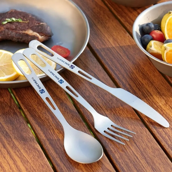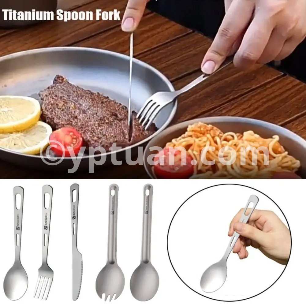 1Pc Portable Titanium Long Handle Spoon Camping Light Titanium Cookware Cutlery Fork EDC Environmental Outdoor Picnic Accessorie
