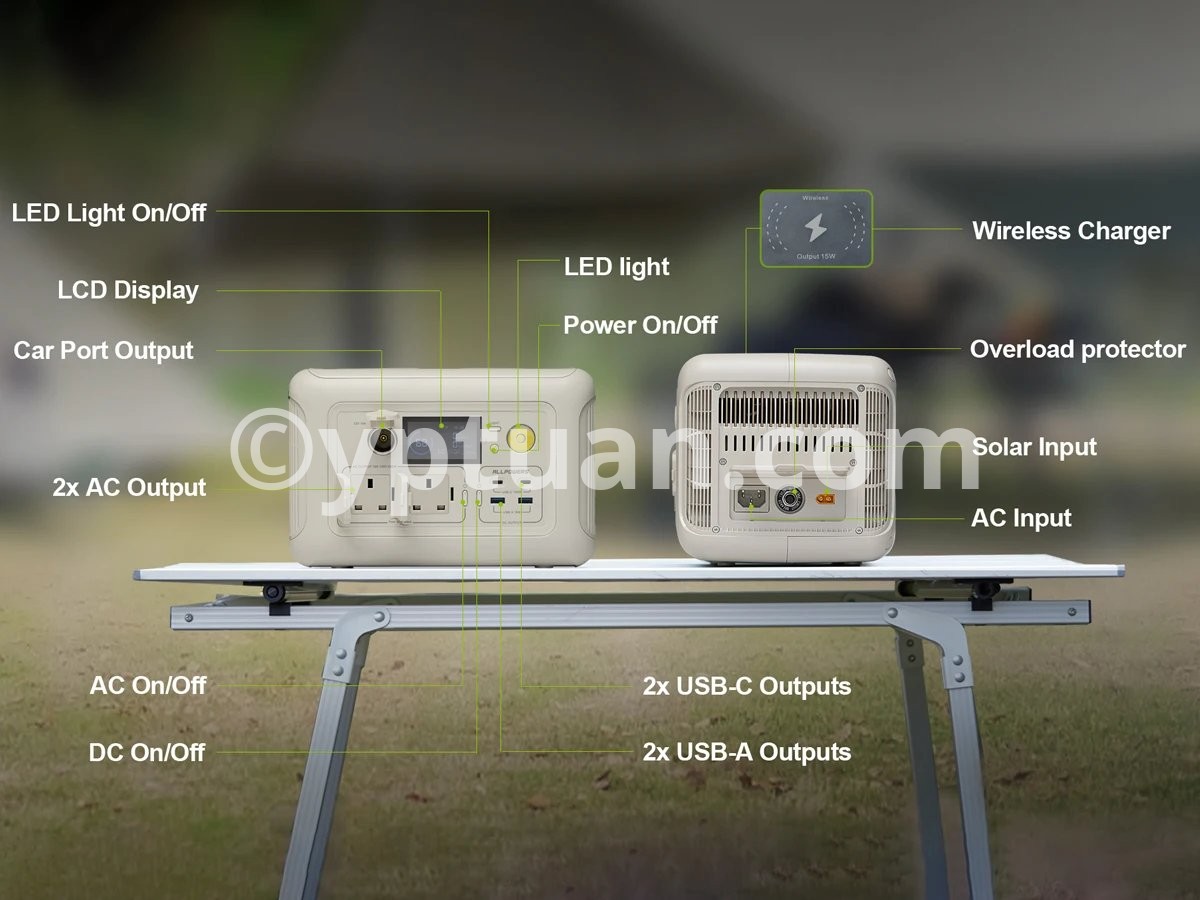 【600W Huge Stable Output】Up to 600W Pure Sine Wave AC inverter included (1200W surge), ALLPOWERS R600 portable power station can power 10 essential devices simultaneously with stable 110V/60Hz or 230V/50Hz output. 2 AC, 2 USB-A, 2 USB-C, 1 Cigarette lighter, 1 Wireless Charger meet all your needs.