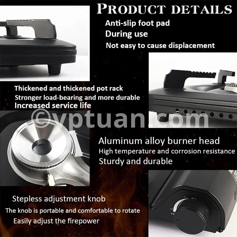2025 Advanced Automatic Ignition Camping Gas Stove Portable Single-Burner Stove Stainless Steel Stable Stand Piezo Ignition Portable Gas Stove Adjustable Butane Camping Stove Windproof Single-Burner Butane Stove Cassette Furnace for Indoor & Outdoor Cooking Features: 1.Easy Use: Fuel installation takes just 10 seconds, making it incredibly easy to operate this portable gas stove. With its built-in ignition system, there's no need for matches or lighters; simply ignite effortlessly and enjoy adjustable flame strength. 2.Energy Saving: Utilizing pure blue flame technology, the butane camping stove offers full combustion with high heat efficiency, saving energy and reducing carbon output. Its multi-directional airflow ensures a more efficient burn and powerful heat. 3.Free Control: Safe and convenient operation is guaranteed with the single-burner butane stove's multi-level flame control, allowing for precise valve adjustments with sensitive response, making management effortless. 4.Wide Use & Portability: This cassette stove is perfect for outdoor camping, hiking, adventure trips, hot pot, BBQ, outdoor cooking, kitchen use, or emergencies, providing reliable performance wherever needed. 5.Compact Design: The cassette furnace's lightweight and portable design allow for easy carrying and storage, ensuring you can enjoy cooking on-the-go without any hassle. Specification: Origin: Mainland China Material: Stainless Steel Dimensions: 335mm*275mm*81mm/13.2in*10.8in*3.2in Net weight: 1300g Gross weight: 1400g Note: Due to different monitor settings and lighting conditions, the actual color of the item may vary slightly from the pictures. Thanks for your understanding! Please allow a 1-2 cm difference in measurements due to manual measuring
