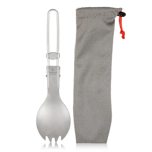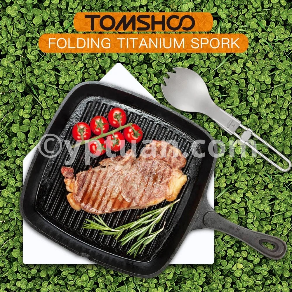 TOMSHOO Titanium Folding Spork Outdoor Camping Hiking Backpacking Dinner Spork Utensil Tableware titanium camping spork