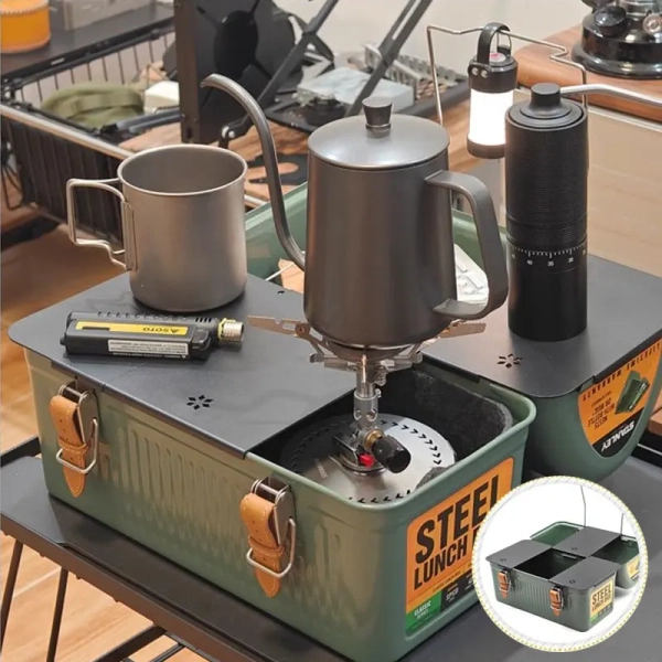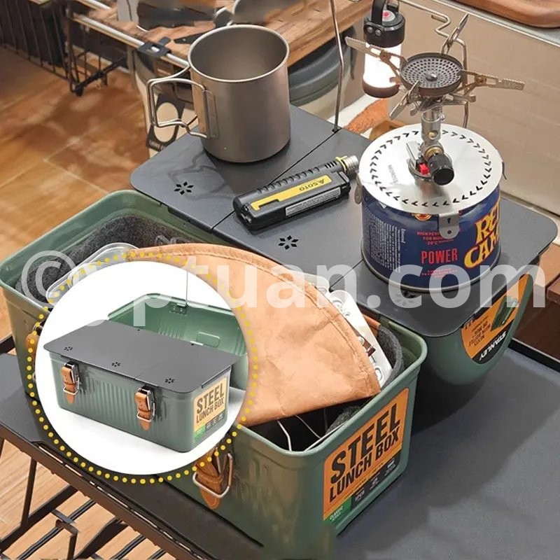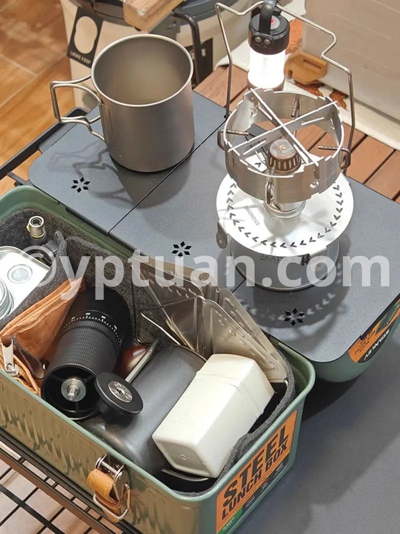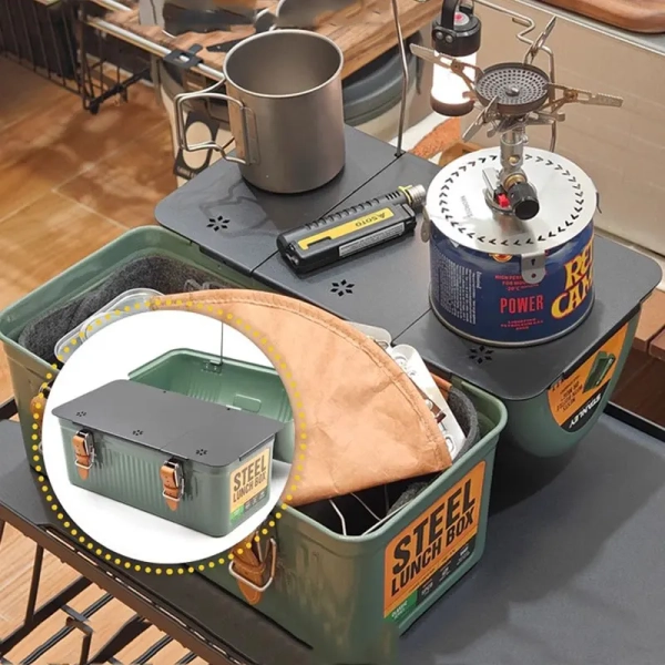 STANLEY Classic Lunch Box 9.4L, Ultra-lightweight Aluminum Alloy Tabletop, Blacked-out Wind/Full Weight Approx. 243g/Can be Combined Freely. Note:1,This item only includes the aluminum tabletop (accessory) and does not include other items such as the stove. 2,Hot kettles or other cooking utensils are not recommended to be placed directly on the tabletop, as they may burn the finish. 3,The surface of the table plate (small part) may have a - some spraying uneven situation, does not affect the use. Mind do not shoot.