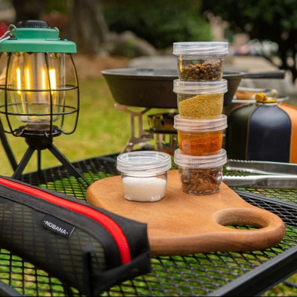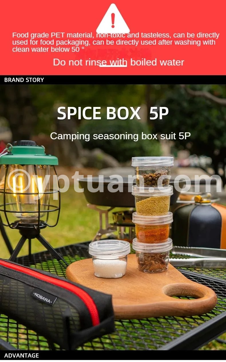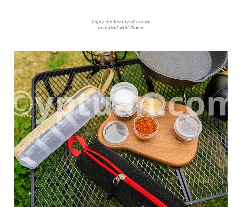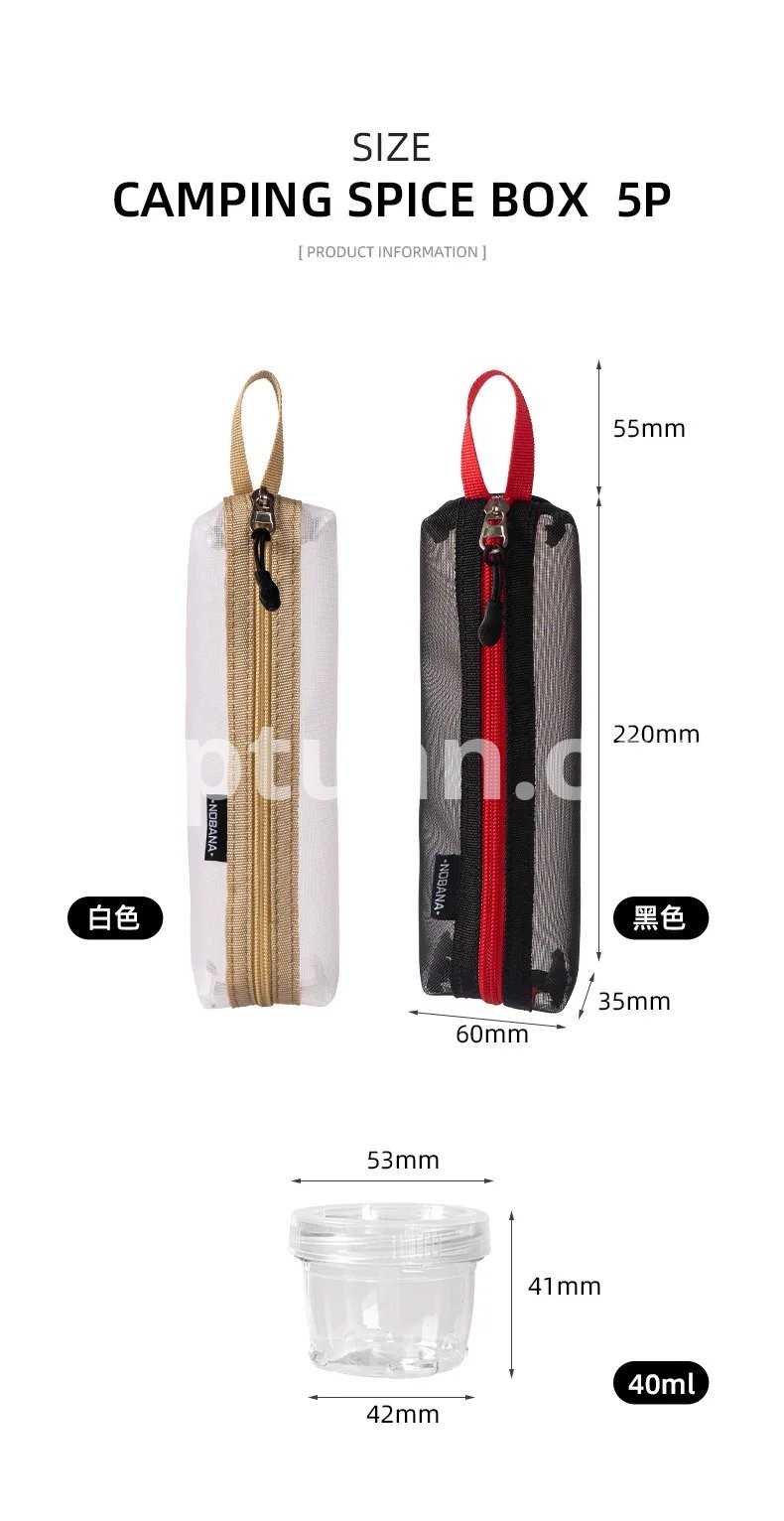 Portable Camping Spice Kit Spice Container Bag with 5 Clear Seasoning Bottles Travel Picnic Spice Holder Condiment Container Set