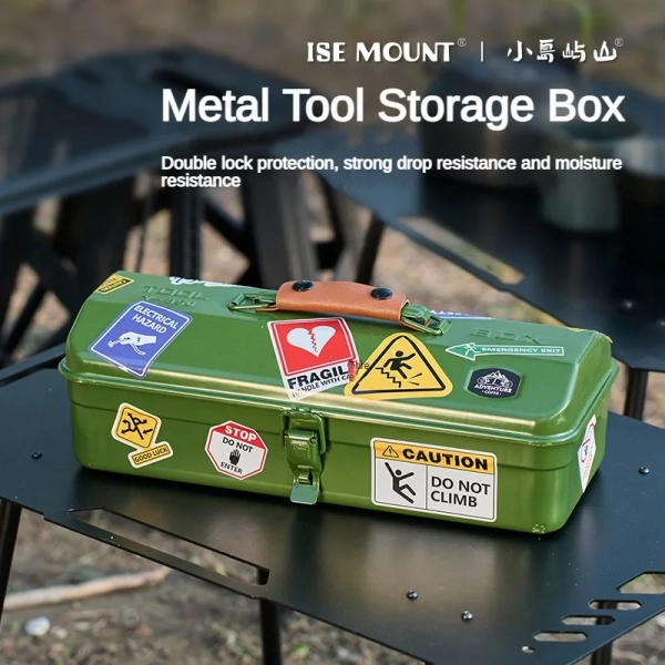 Outdoor Metal Tool Box Debris Storage Box Portable Hand-held Storage Box Fall-proof Moisture-proof Camping Accessories
