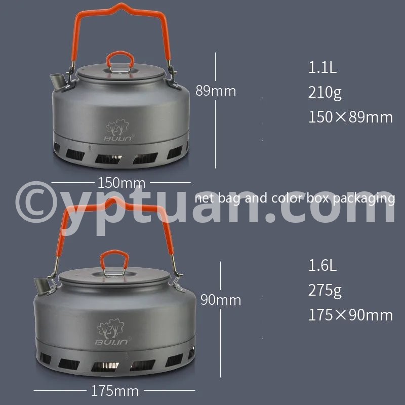 1.1L/1.6L Portable Ultralight Outdoor Camping Tableware Hiking Quick Heat Teapot Coffee Water Kettle